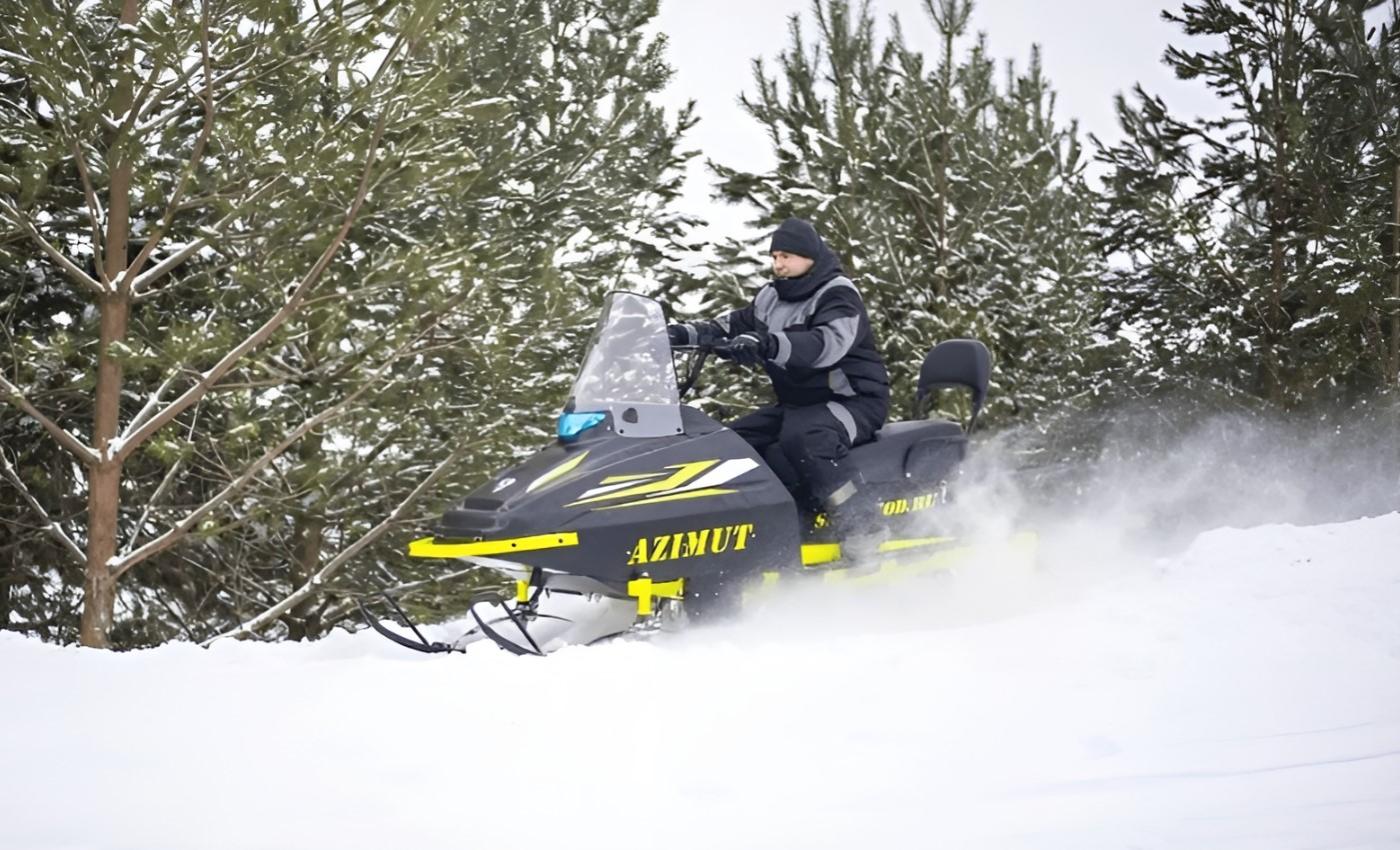 «Азимут CS» также имеет классическую снегоходную компоновку с передним расположением двигателя. Он надежен, прост в обслуживании и ремонтопригоден, обладает хорошими тяговыми характеристиками и показателями проходимости.