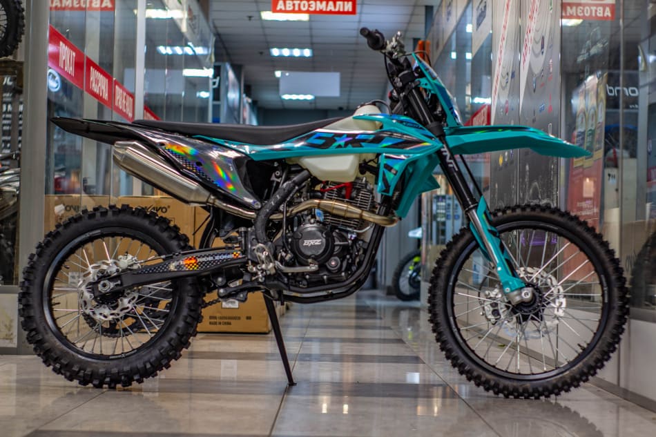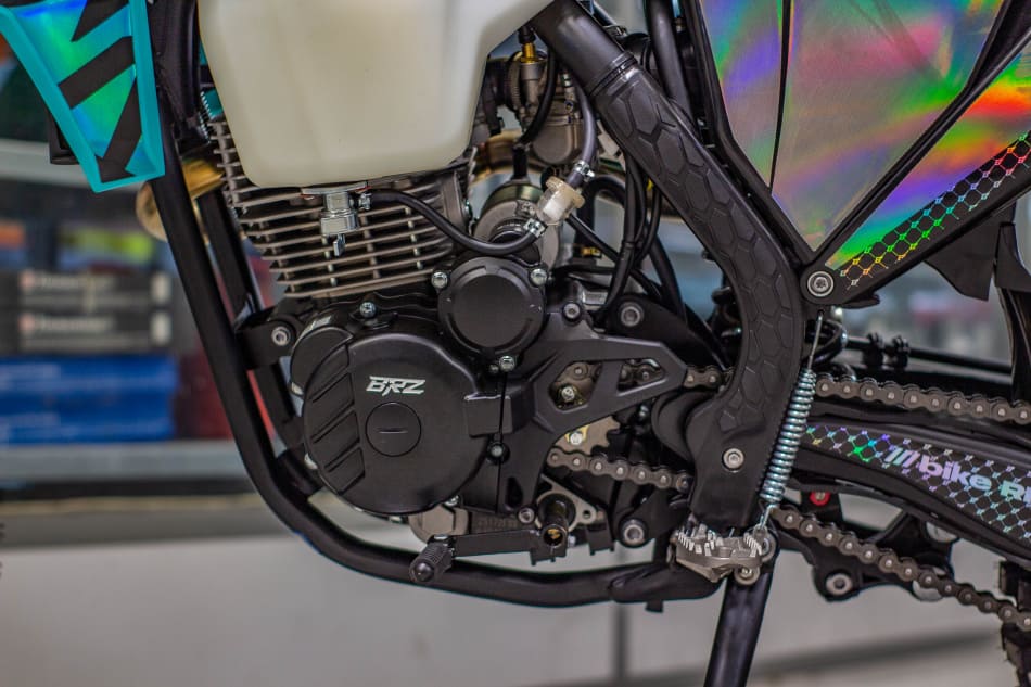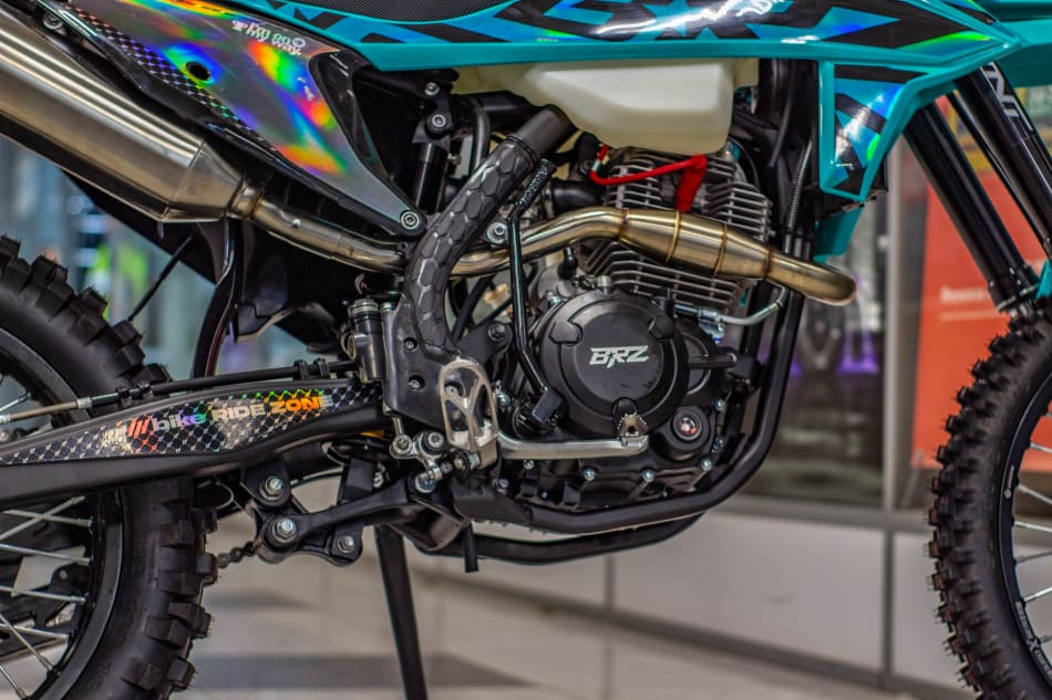 Мотоцикл BRZ X5MT представляет собой идеальное сочетание мощности, скорости и дерзкого дизайна. Оснащён пятиступенчатой коробкой передач и надёжным двигателем мощностью 21 л.с, что обеспечивает плавное ускорение и скоростную езду. Модель имеет прочную и лёгкую раму, что делает его манёвренным и устойчивым на трассах, неровностях и лесных прохватах. Спортивная подвеска с большим ходом даёт уверенное сцепление с землёй, обеспечивая комфорт и стабильность во время движения.