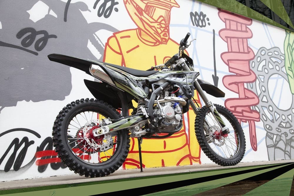 Z7 в заводской комплектации готов к покорению серьезного бездорожья благодаря полностью регулируемой подвески MOJO Racing c большими ходами, литым рычагам задней прогрессии, прямоточному выхлопу и “злой” внедорожной резине. Z7 идеально сбалансирован для эндуро, угол наклона вилки рассчитан специально для лёгкого преодоления высоких преград, подъёмов и барьеров. На мотоцикле установлены: прочнейший алюминиевый подрамник, усиленные легкосплавные колёсные диски, усиленная цепь, защита рук, датчик моточасов, прочные анодированные CNC ступицы, защита помпы и коллектора. Мощная гидравлическая тормозная система HSК Racing остановит байк в любых условиях.