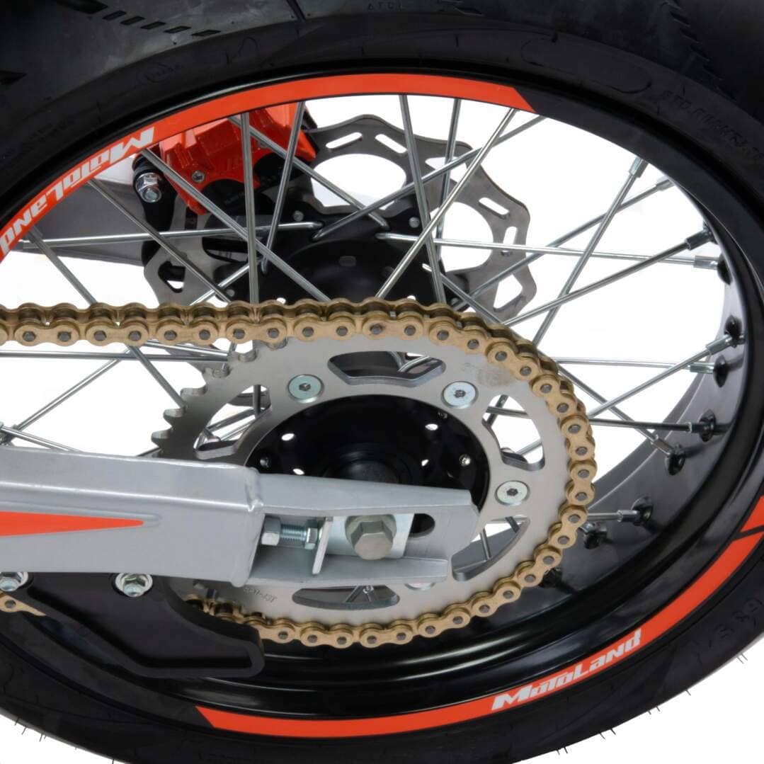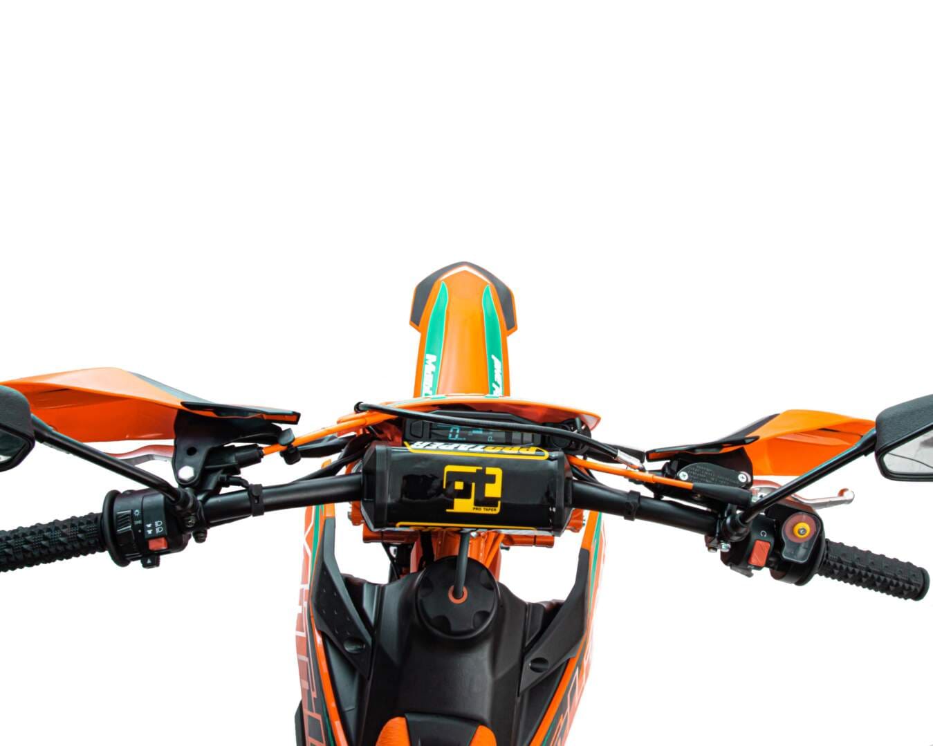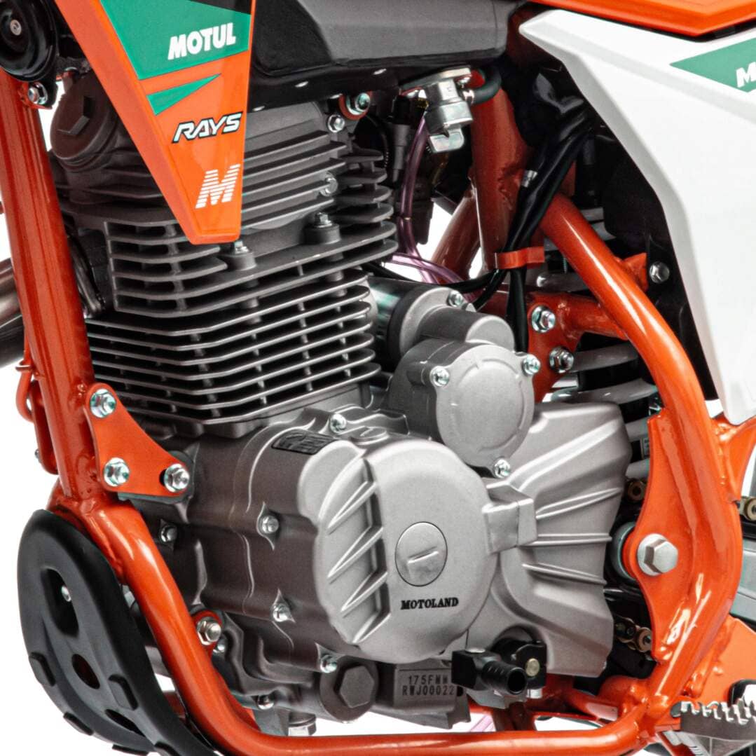 Для запуска двигателя можно использовать электростартер или кикстартер. Система зажигания электронная (CDI). Механическая трансмиссия содержит 5 передач. У мотокросса отличный запас хода:— 9 л, расход топлива — 5 л на 100 км. Передняя LED фара обновленного дизайна легко включается поворотом замка зажигания и позволяет ездить в сумерках и темноте, а также стоит эргономичная и многофункциональная приборная панель