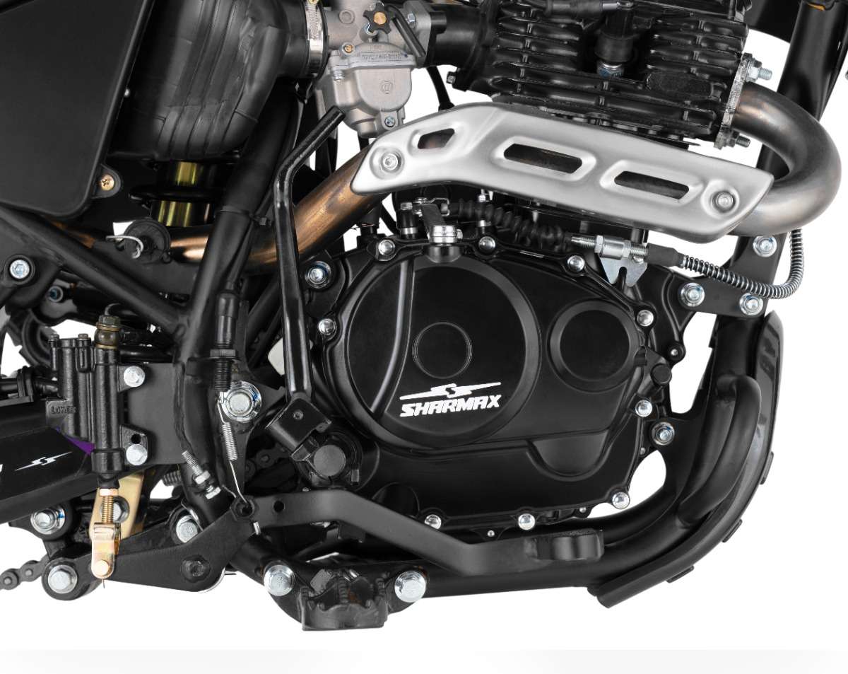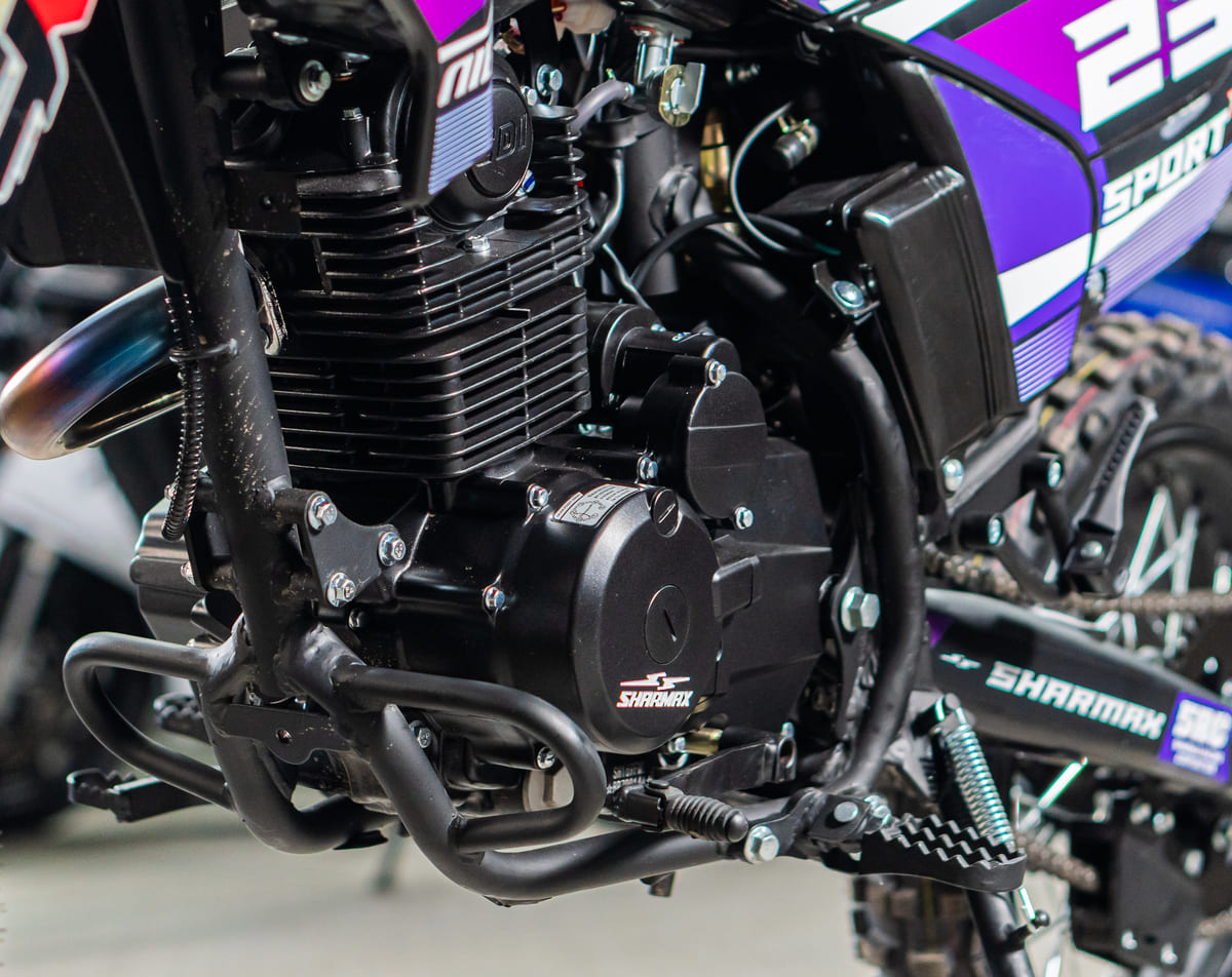 Sharmax Motors Sport 230 оборудован системой воздушного охлаждения. Нет громоздкого радиатора, вес байка стал меньше, управляемость — лучше. Просто нажмите на газ — и вперёд! За температуру не переживайте — не перегреетесь.