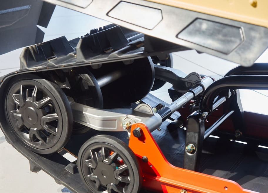 Гусеницы снегохода отличаются четким сцеплением со снегом и обеспечивают безопасность райдеру. Особенно это важно, когда речь идет о подъемах по заснеженным тропам. На снегоходе установлена: передняя подвеска — двойные A-образные рычаги.
