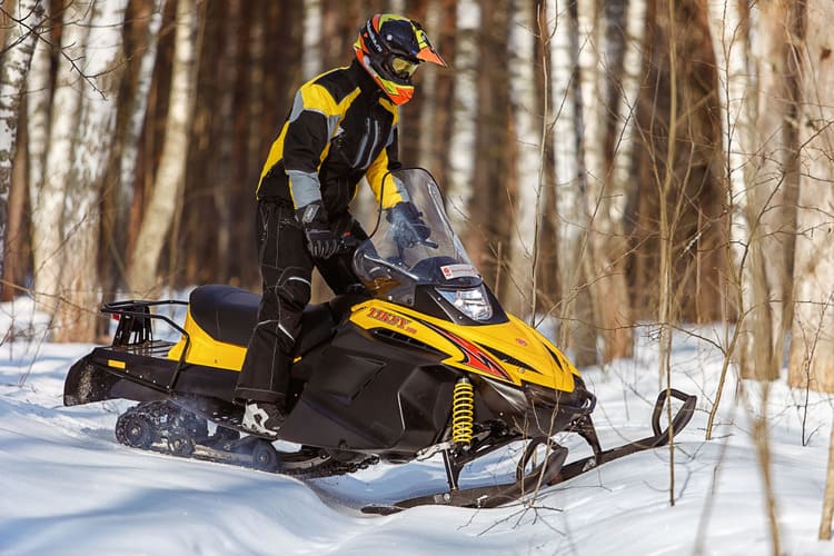 Снегокат имеет вариатор — системой передач, которая позволяет без рывков разгоняться и двигаться на постоянной скорости. Также вариатор уменьшает эксплуатационный срок деталей и повышает комфорт во время езды.