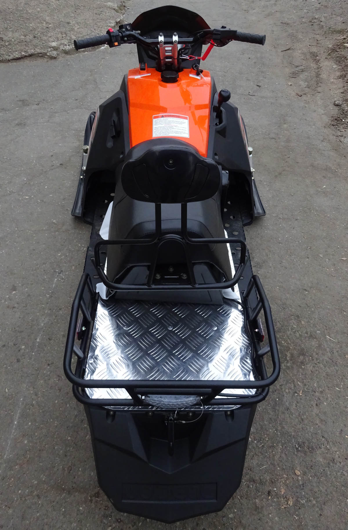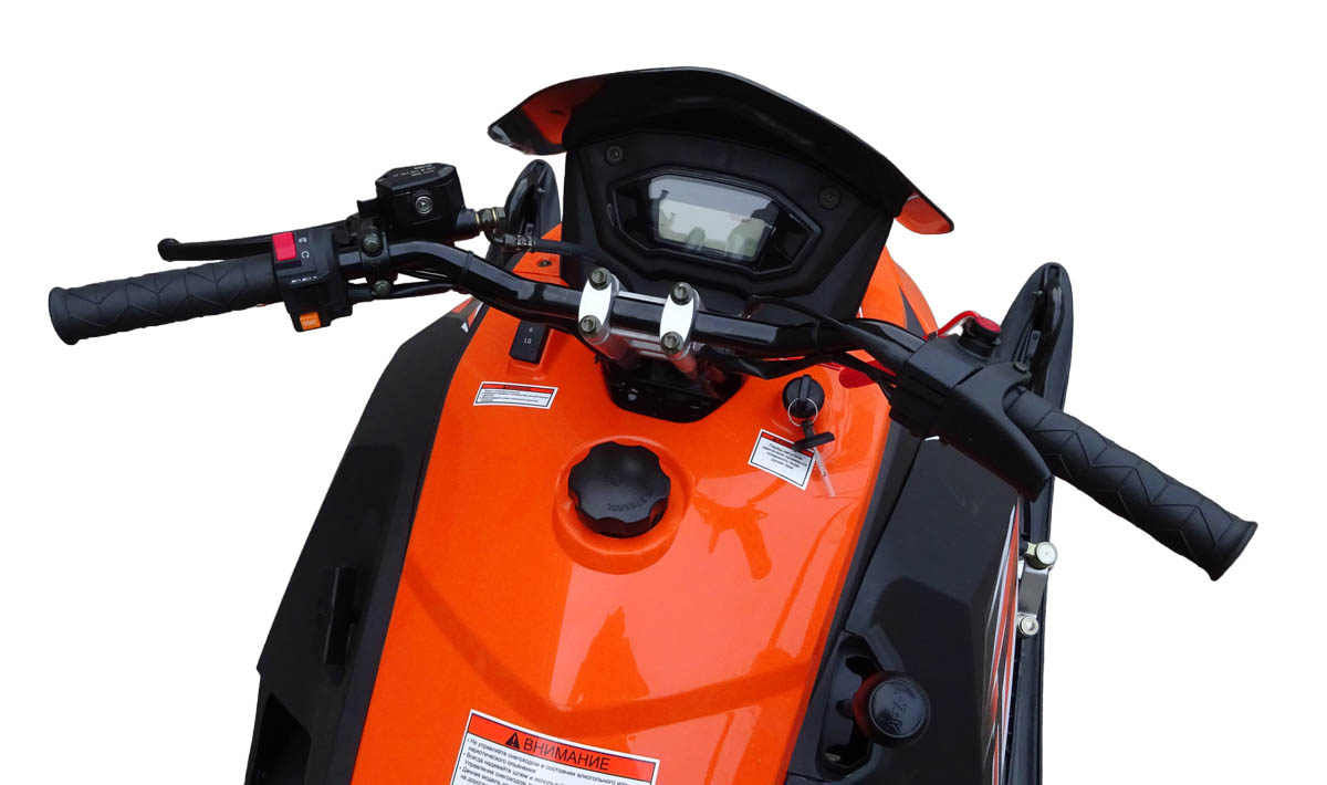 Армированная гусеница снегохода обладает хорошим сцеплением со снегом и обеспечивает безопасность райдеру. Кроме того, она позволяет устройству преодолевать подъемы с уклоном до 20°. На снегоходе установлена: передняя подвеска — рычажная с амортизатором.