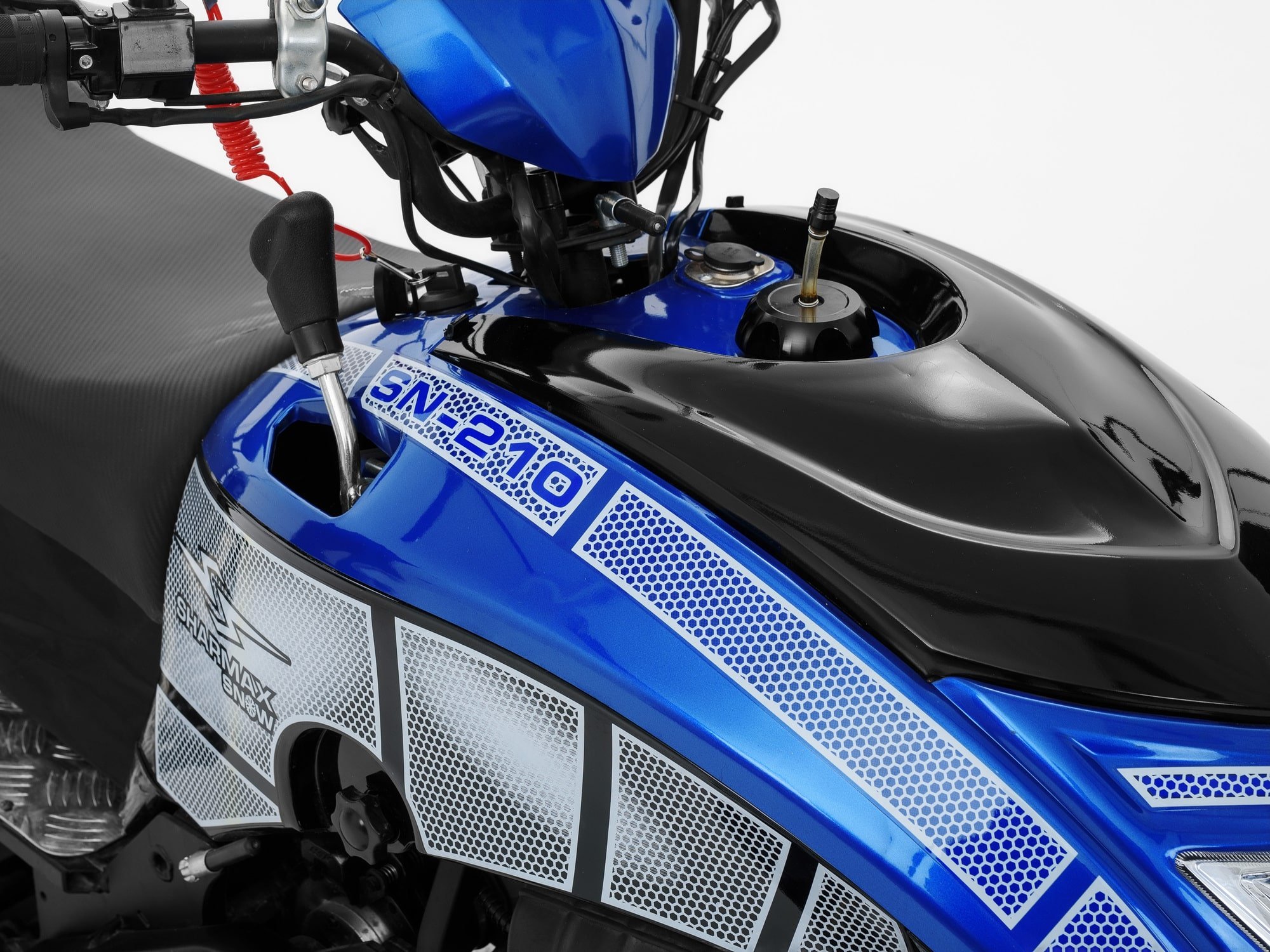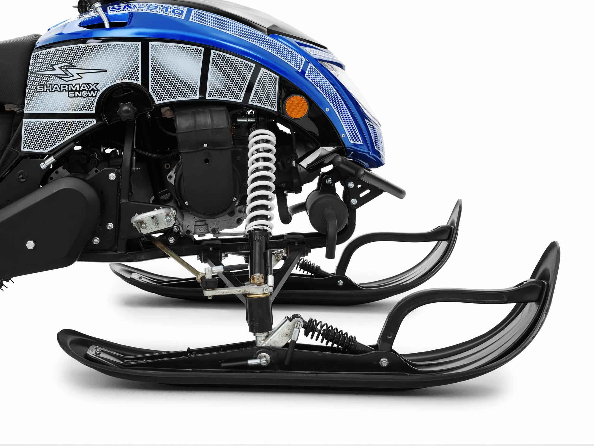Подогрев ручек и яркая фара сделают поездку на снегоходе Sharmax SN-210 более комфортной. Компактность модели и рычажная подвеска обеспечивают лёгкость эксплуатации. С этим снегоходом справятся даже новички. Безопасность торможения обеспечивают надёжные дисковые тормоза.