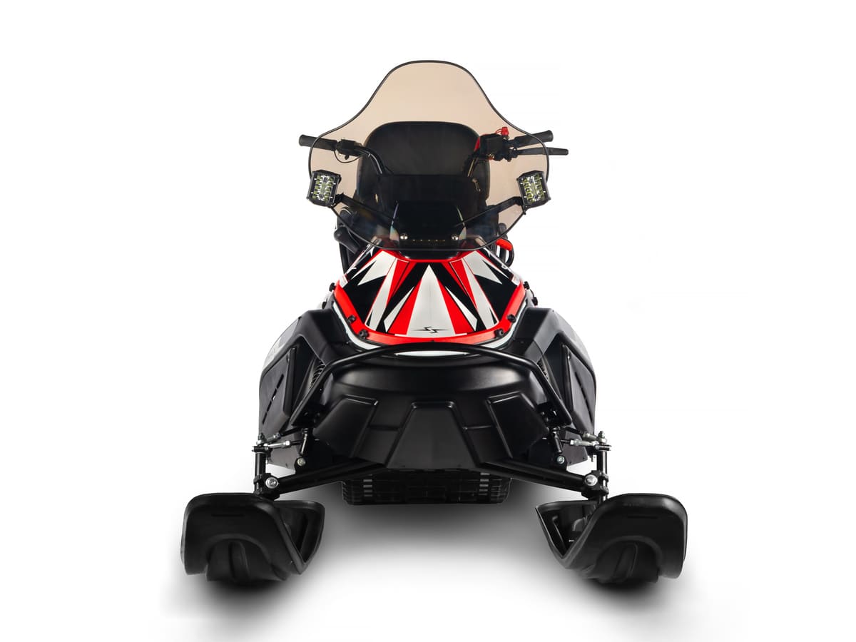 Снегоход SHARMAX SHP-680 Luxe PRO оснащён яркой светодиодной фарой и лентой на передней части снегохода, что обеспечивает впечатляющий уровень освещённости в тёмное время суток. Гидравлическая тормозная система с 120-миллиметровым тормозным диском и увеличенным суппортом повышенной эффективности даст возможность остановить снегоход на крутом склоне.