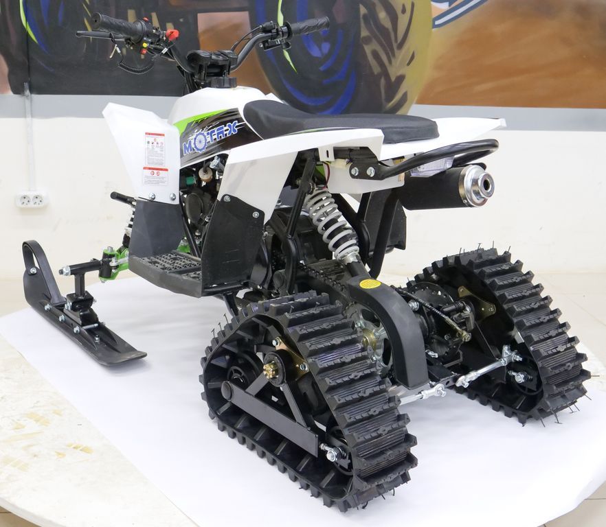 Cнегоцикл Gekkon Snow — это снегоход на гусеничном ходу, построенный на базе квадроцикла Motax Gekkon 70 cc. С возможностью переоборудования в полноценный квадроцикл на летний сезон. Он отлично подойдёт для детей в возрасте от 3 до 9 лет.