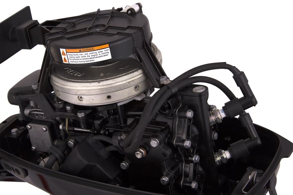 Двигатель Подвесной мотор CONDOR T9.8HS развивает мощность 9.8 л.с. при объеме 169 см3. Количество цилиндров – 2, диаметр цилиндра 50 мм, ход поршня 43 мм Максимальное число оборотов в минуту находится в пределах от 5000 до 6000. Двигатель имеет карбюраторную систему питания, система зажигания CDI. Смазка движущихся частей осуществляется предварительно смешанными бензином и маслом. Охлаждается мотор водой. Выхлопные газы удаляются через винт. Управление Двухтактный лодочный мотор CONDOR T9.8HS имеет румпельное управление (ручка газа на румпеле).