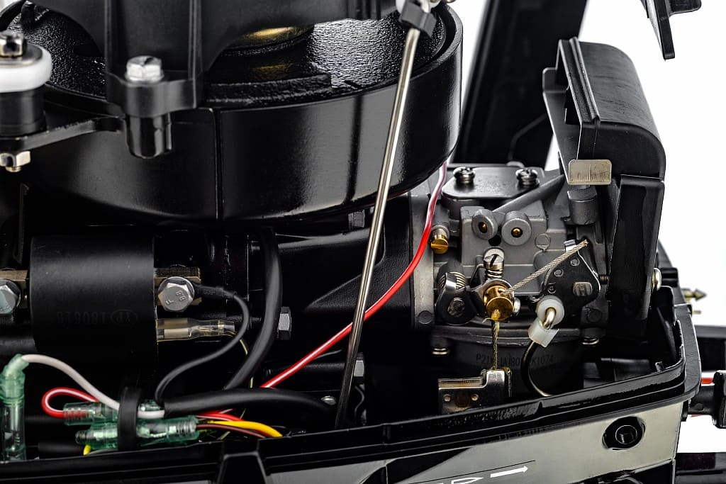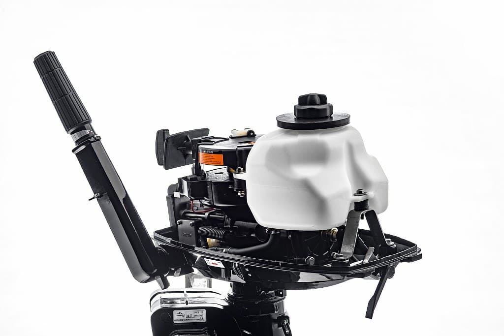 Конструкция струбцины мотора позволяет регулировать рабочий угол атаки (5 положений), а также фиксировать мотор в положении движения по мелководью и полностью поднятом положении. На струбцине предусмотрена петля для крепления страховочного троса.