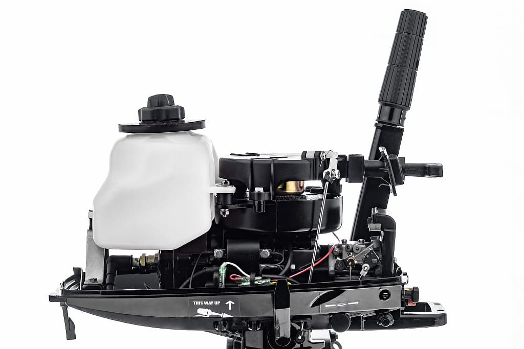 Для облегчения запуска холодного двигателя в конструкции карбюратора предусмотрена воздушная заслонка, с регулировкой на корпусе. А для контроля работы системы охлаждения на моторе установлена специальная форсунка. Мотор Marine Rocket MR5FHS запускается ручным стартером, а управляется стандартным румпелем с поворотной ручкой газа (гашеткой мотоциклетного типа) с анти-проскальзывающими насечками.