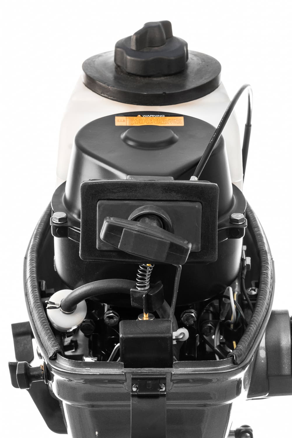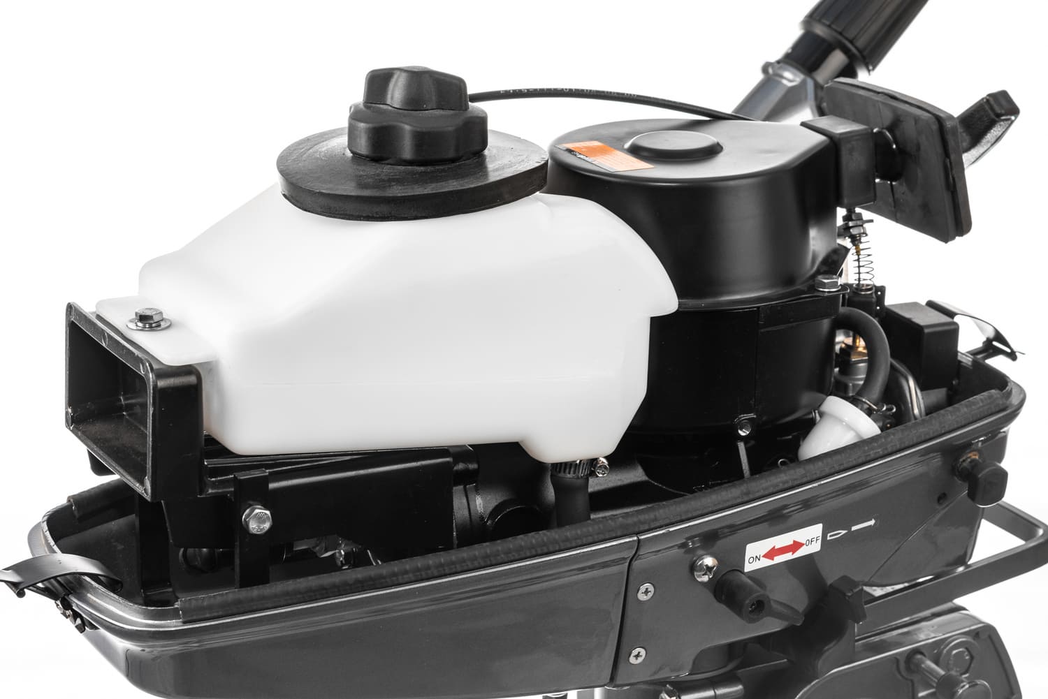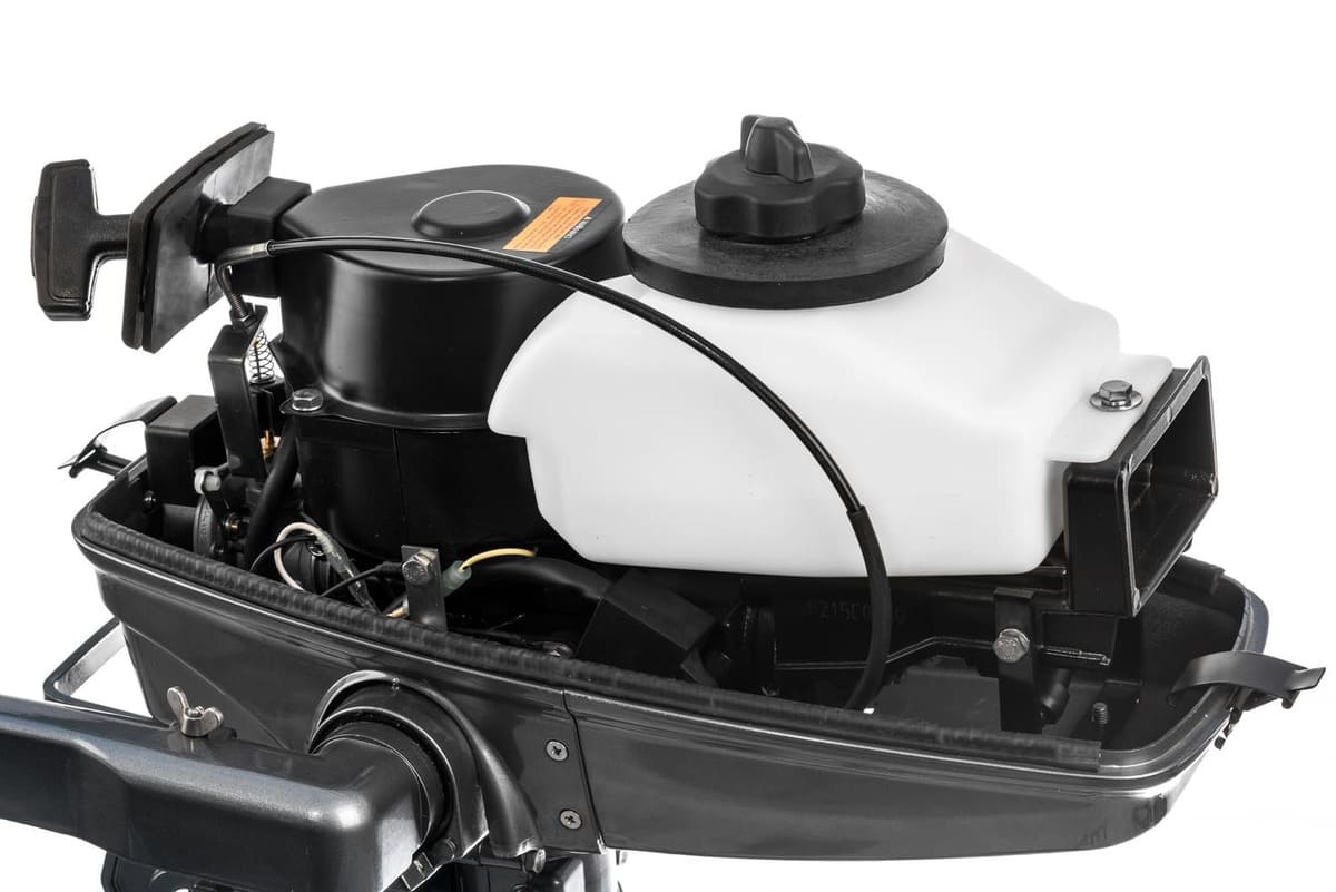 Встроенного бака объемом 1,4 л хватит на час работы на полном ходу. У данного ПЛМ есть передняя и нейтральная скорости. Реверс осуществляется за счет разворота мотора на 180º.От своих 4-х тактных собратьев его отличает меньший вес (13 кг), большая удельная мощность и простота конструкции, а значит повышенная надежность. Усовершенствованная цифровая система зажигания CDI обеспечит легкий запуск двигателя в любых погодных условиях.
