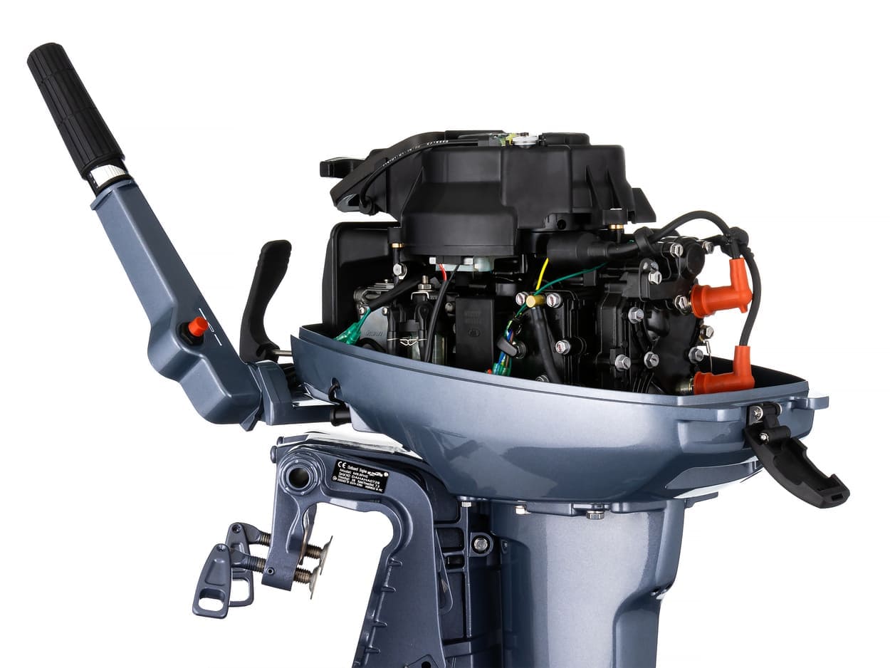 Для этого 2-х тактного двухцилиндрового двигателя объемом 246 см3 характерна высокая производительность при сравнительно малом весе. Кстати, 9,9 л. с. сделаны неспроста, ведь это максимальное значение, когда на пользование мотором не требуются регистрационные документы. Вес мотора составляет 36 кг, расход топлива 5 л/час. Идущего в комплекте поставки внешнего бензобака на 24 л хватит продолжительное время работы.