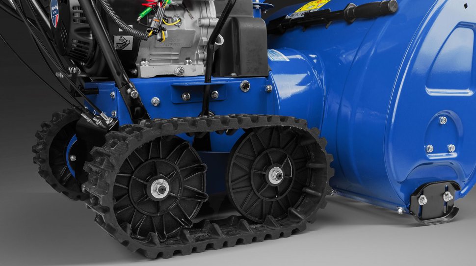 — гусеница у этой модели обеспечивает достаточное сцепление на всех поверхностях, а в совокупности с колесами диаметром 35,5 см позволяют минимальную пробуксовку;