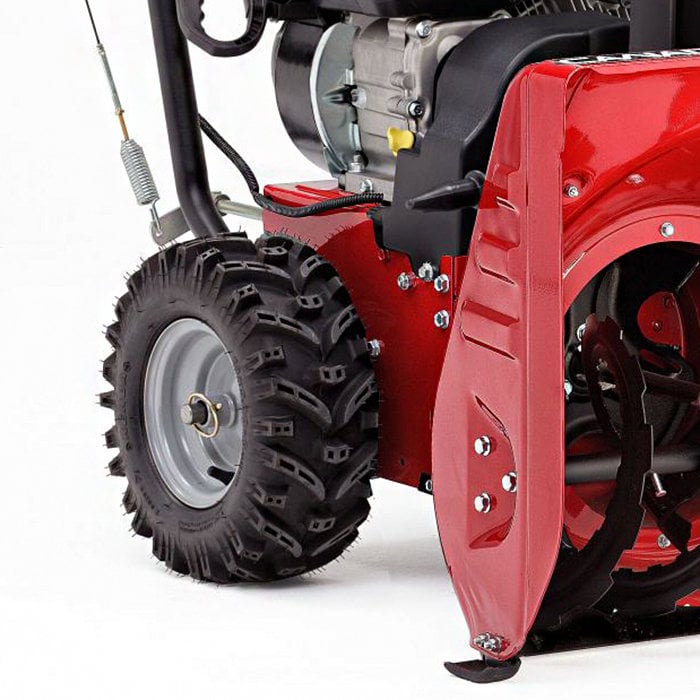 Колеса. Данная модель самоходного снегоочистителя оснащена пневмоколесами Artic Trac. Они позволяют машине производить минимальную пробуксовку и оснащают ее хорошим сцеплением с любой поверхностью.