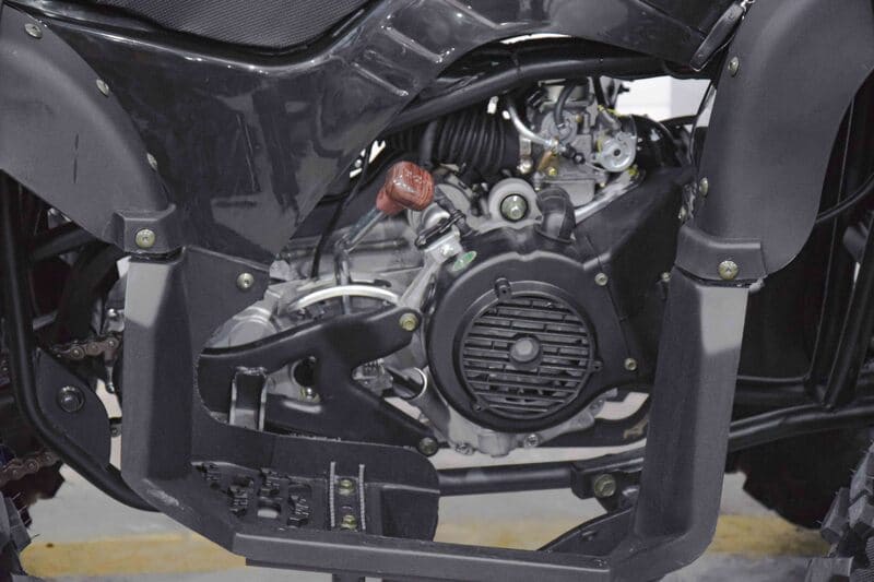 Квадроцикл оснащен бензиновым двигателем мощностью 16 л.с. и объемом 150 куб. см, что обеспечивает отличную производительность и динамику. Мотор работает на воздушном охлаждении, что в сочетании с этими характеристиками гарантирует надежную и долгосрочную эксплуатацию квадроцикла, а также его стабильность в работе.