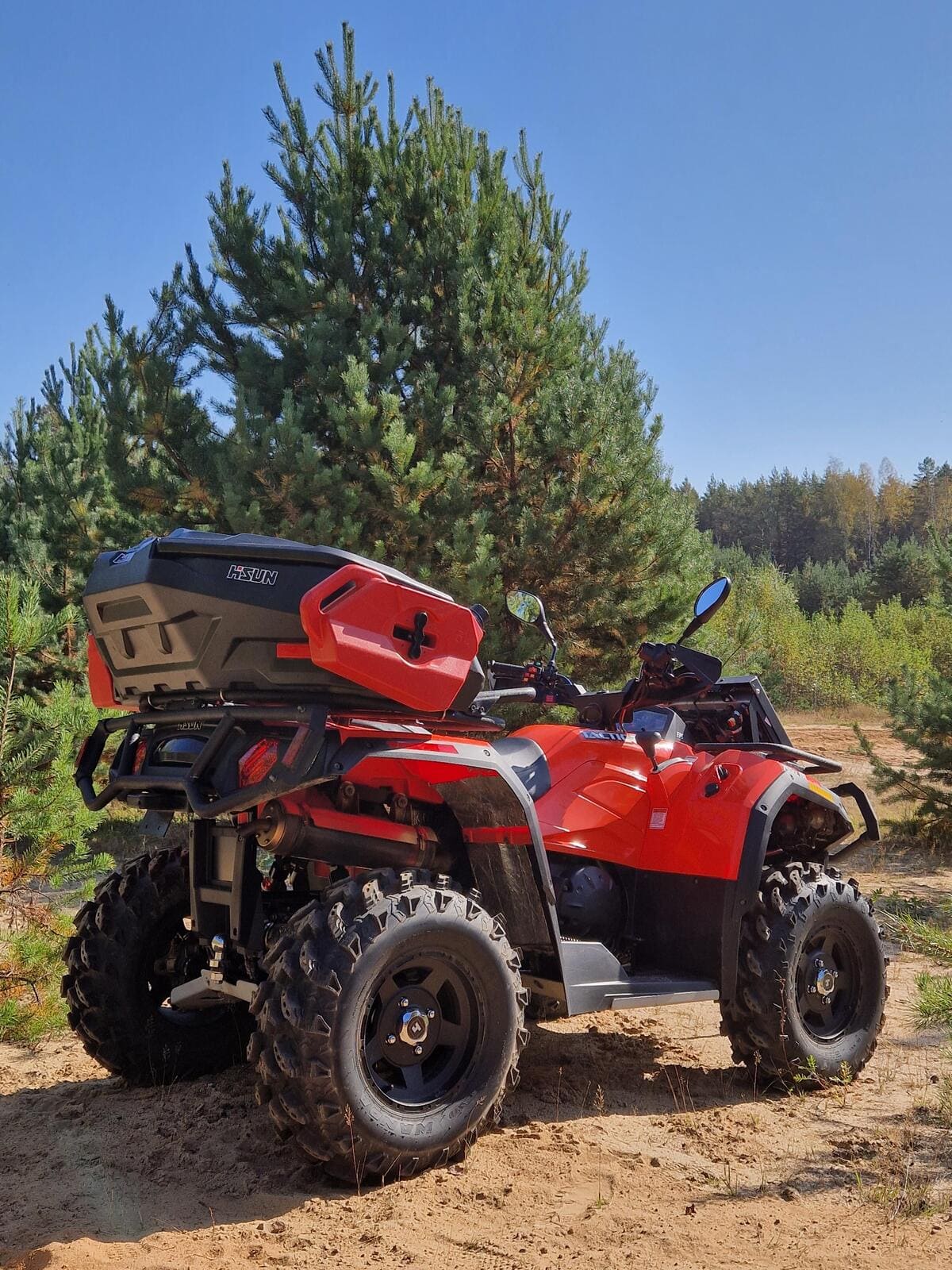Квадрик оборудован 4-х тактным бензиновым двигателем мощностью 44 л.с. и объемом 735 куб. см, что обеспечивает ему отличную производительность и динамику. Он также имеет жидкостное охлаждение, что гарантирует надежную работу даже в самых сложных условиях. Благодаря расходу топлива на 100 км 6 литров бензина и объему топливного бака в 17 литров мотовездеход способен проехать около 300 км.