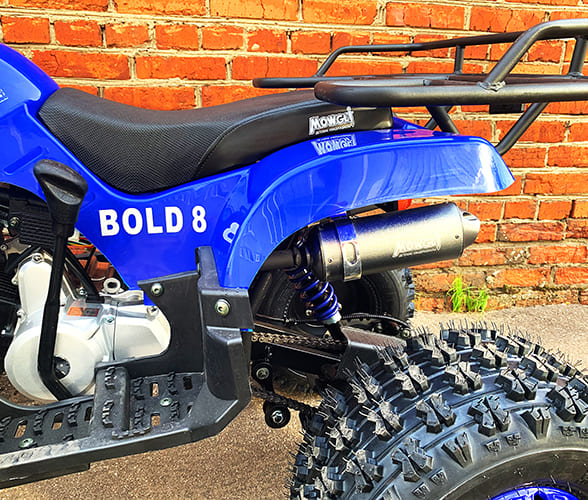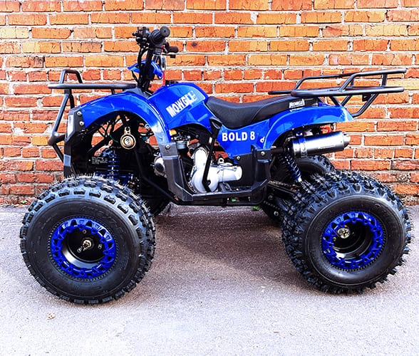 АТВ Маугли Болд оснащен бензиновым двигателем мощностью 10 л.с. и объемом 124 кубов, что обеспечивает отличную проходимость и динамику на дороге. Благодаря системе воздушного охлаждения, данная модель ATV подходит для активного отдыха, спорта и преодоления легкого бездорожья.