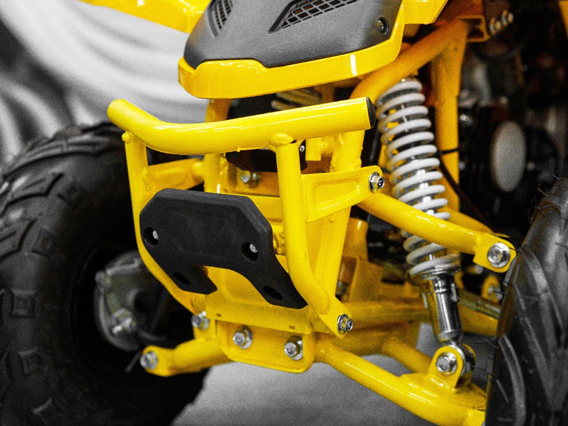 -Мощный двигатель. Благодаря 4-тактному двигателю объёмом 110 см³ и мощностью 9 л. с., Sharmax Cross 130 обеспечивает уверенный старт и плавный разгон до 45 км/ч. Юный райдер сможет легко преодолевать любые дорожные препятствия и наслаждаться скоростью на открытых маршрутах. При этом квадроцикл отличается экономным расходом топлива, что делает его удобным в эксплуатации.