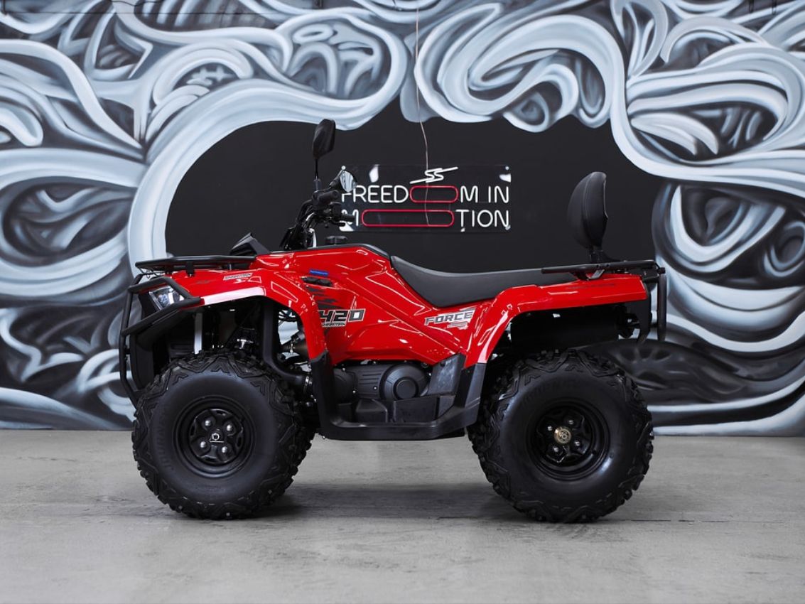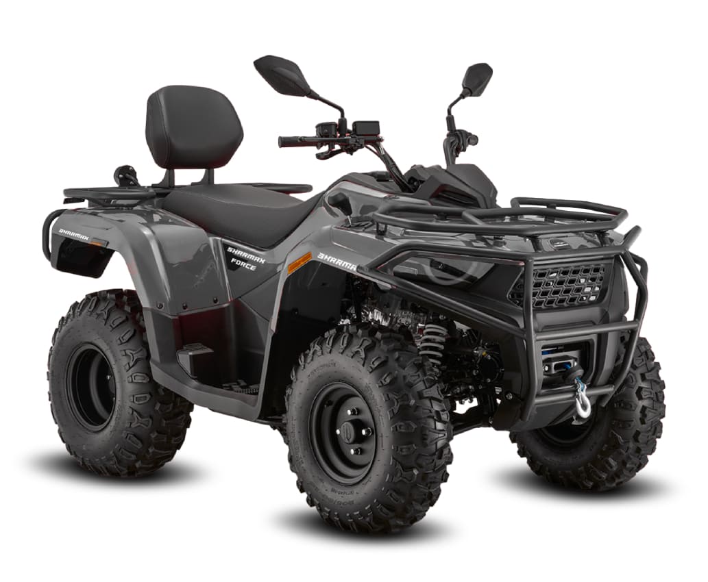Sharmax Force 420 — один из самых лёгких квадроциклов в своём классе. Он весит всего 235 кг, что обеспечивает непревзойдённую отзывчивость в управлении. Этот квадр легко преодолевает любые преграды на пути, словно пролетает над ними, при этом экономно расходуя топливо и снижая нагрузку на двигатель. Sharmax Force 420 пройдёт везде: по грязи, песку и даже небольшим ручьям. Его мощный двигатель, большой клиренс и агрессивный протектор шин позволят вам без проблем добраться до пункта назначения по самой сложной местности.