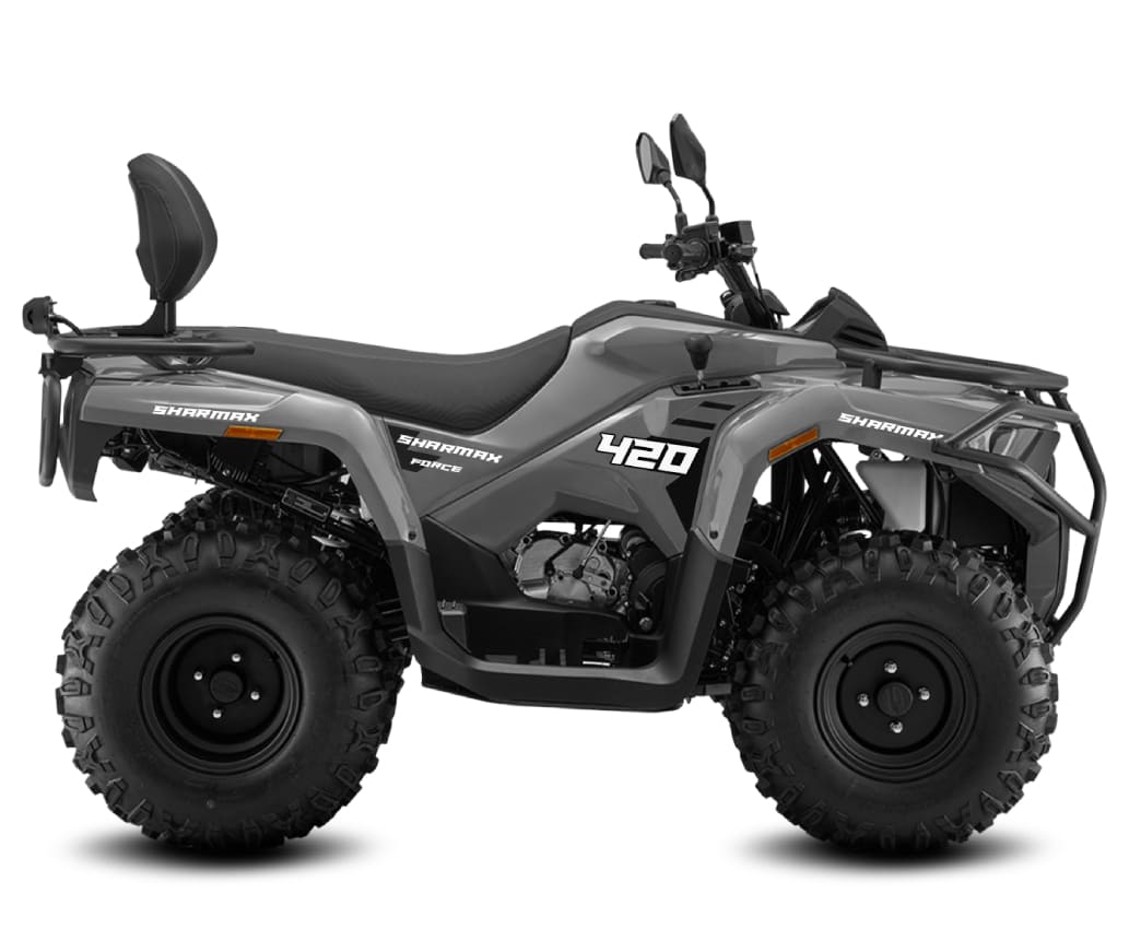 Sharmax Force 420 — это универсальный квадроцикл, созданный для самых требовательных любителей активного отдыха. Он станет вашим надёжным спутником в любых приключениях: будь то экстремальная поездка по бездорожью или размеренная семейная прогулка на природе. Квадроцикл оснащён лучшими комплектующими от ведущих мировых производителей, что обеспечивает большую мощность, надёжность и комфорт во время езды. С ним вы сможете покорять самые сложные маршруты и наслаждаться красотами окружающего мира!
