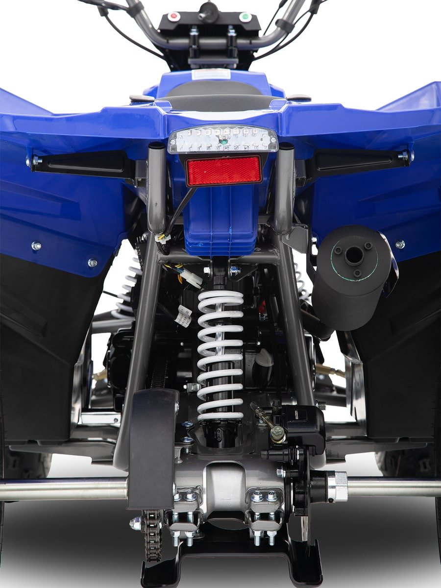 Корпус квадроцикла, созданный из прочного ABS-пластика, выдерживающего большие нагрузки, максимально защищен от воздействия извне: не выгорает на солнце и не ржавеет под дождем. SHARMAX 200 Cross соответствует принятым стандартам безопасности и нормам эксплуатации.