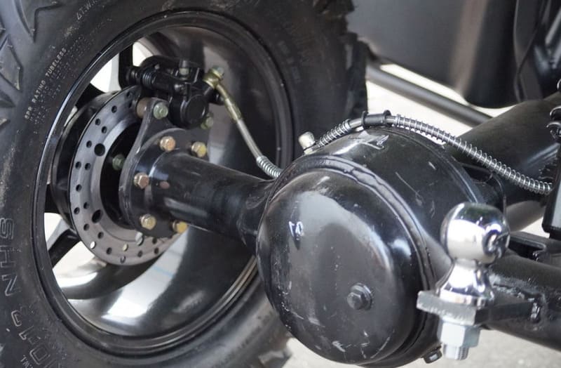 Квадроцикл Сталкер 250 Хаммер останавливается уверенно благодаря ручным и ножным дисковым гидравлическим тормозам. Передняя рычажная подвеска на шаровых опорах обеспечивает стабильность на любом рельефе. Запуск двигателя — простым нажатием кнопки электростартера на руле, где также расположен рычаг пускового обогащения карбюратора.