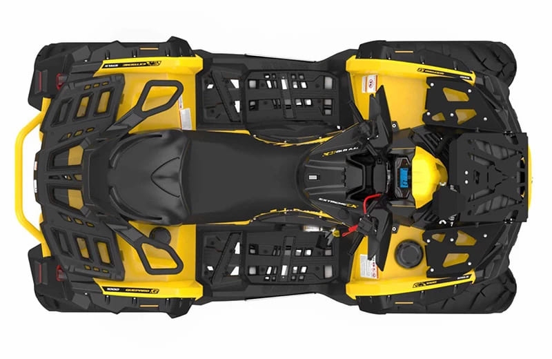 Квадроцикл оснащен шинами сверхнизкого давления диаметром 24 дюйма, что обеспечивает отличное сцепление на мягких участках. Вариаторная трансмиссия в квадроцикле обеспечивает плавное изменение передаточного отношения, позволяя оптимально адаптировать мощность двигателя к условиям движения и обеспечивая стабильный разгон и уверенное маневрирование.