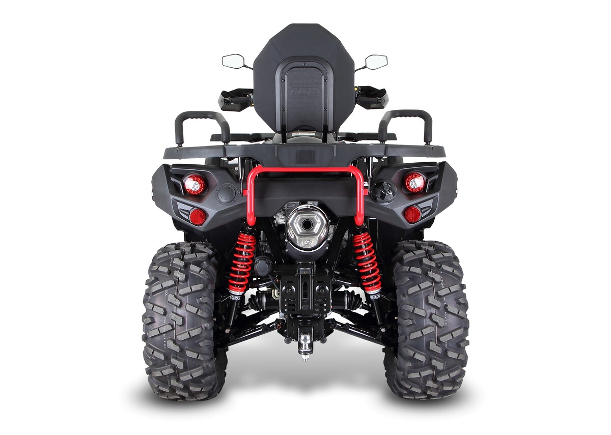 Регулируемые амортизаторы и независимая подвеска квадроцикла TGB (ТГБ) обеспечивают плавность хода на бездорожье, а электроусилитель руля (EPS) снижает нагрузку при маневрировании. Высота седла 950 мм и эргономичные подножки создают удобную посадку для водителя и пассажира. Длинная колесная база (1460 мм) повышает устойчивость на скорости до 90 км/ч.