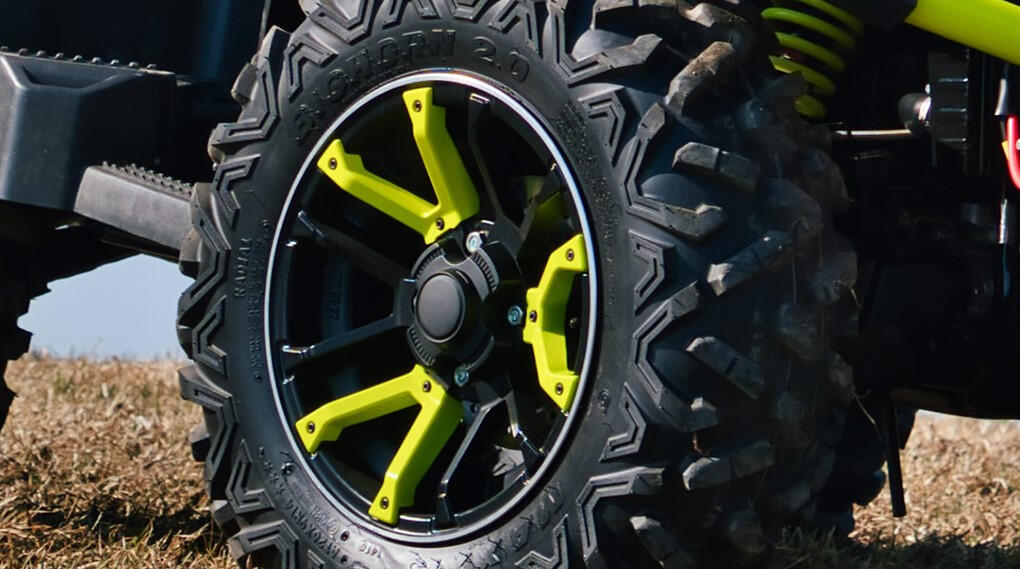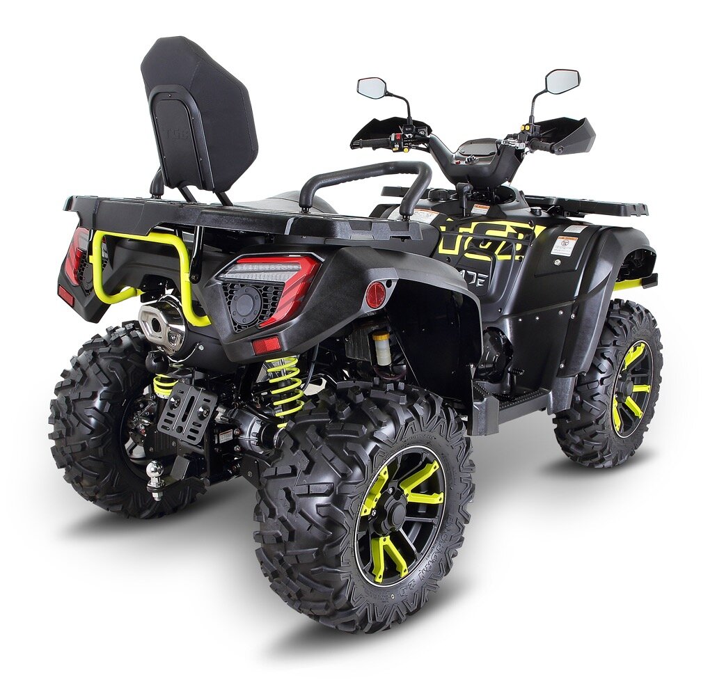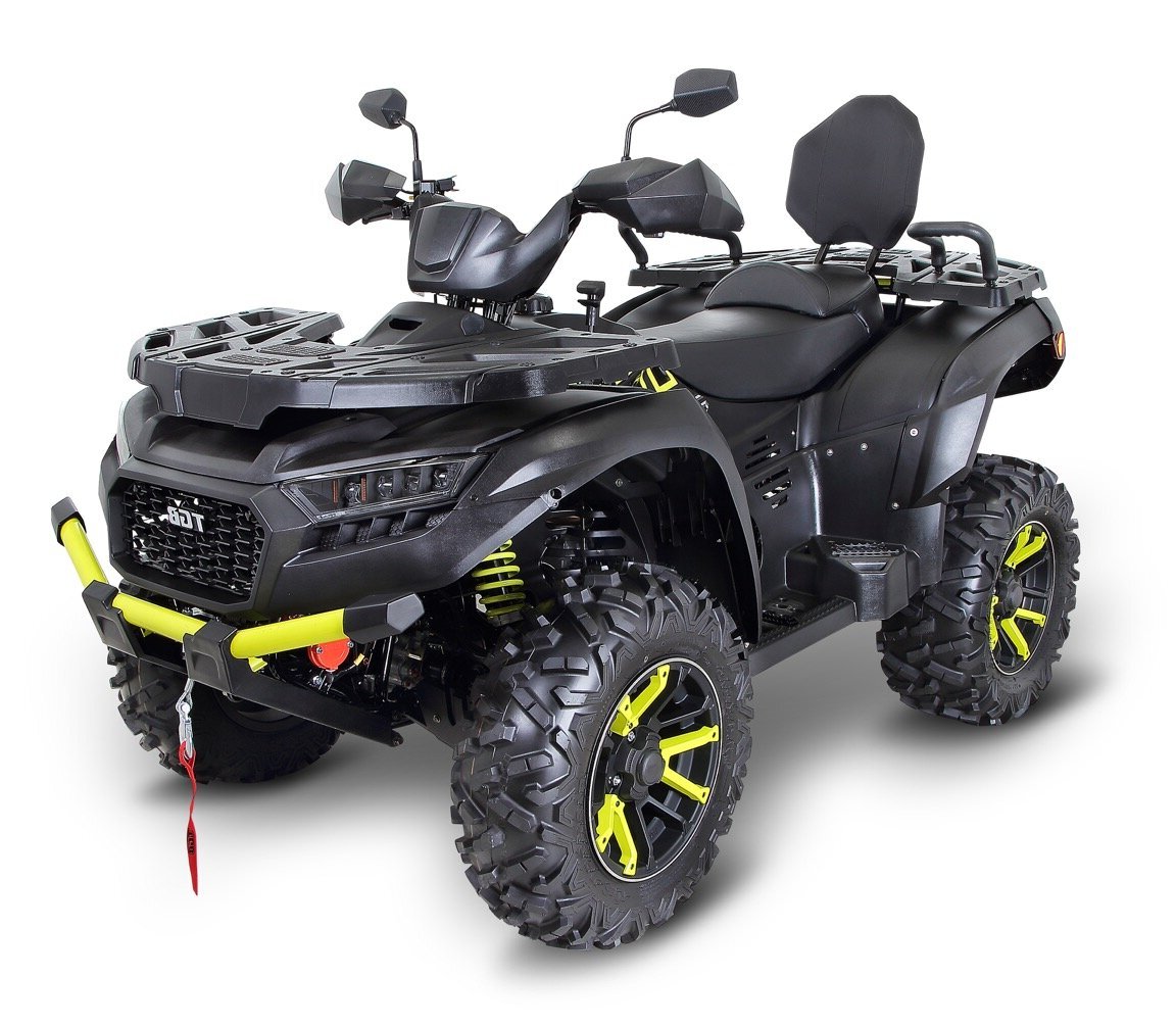 Хромомолибденовая рама квадрика ТГБ выдерживает нагрузки, а габариты 236×123×128 см обеспечивают маневренность. Агрессивный стиль подчеркивают 14-дюймовые колеса, клиренс 290 мм и защитные дуги. Матовое покрытие кузова маскирует царапины, сохраняя презентабельный вид.