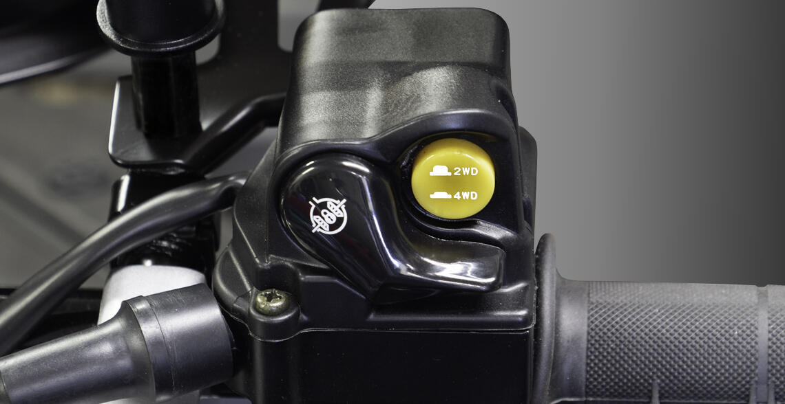 На квадроцикле ТГБ Блейд 600 ЛТХ ЕПС Премиум многофункциональный дисплей с подсветкой отображает: текущую скорость, пробег (общий/суточный), обороты двигателя (RPM), уровень топлива, активную передачу, статус полного привода (4WD). Система предупреждает о перегреве, низком заряде АКБ, неисправностях EFI, активации блокировки дифференциала и работе электроусилителя руля (EPS). Дополнительно показывает статус дальнего света фар.