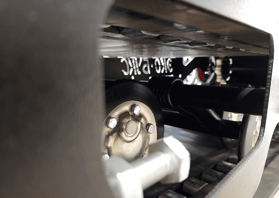 - — Классическая гусеница шириной 500 мм, катковая подвеска и регулируемый угол атаки обеспечивают оптимальную проходимость и возможность всесезонного использования.