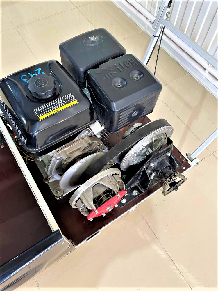 Мотособака оснащена 4-х тактным двигателем Lifan мощностью 15 л. с., что позволяет достигать скорости до 45 км/ч. Это позволяет быстро перевозить общий груз до 300 кг в санях. Объем двигателя составляет 420 кубов.