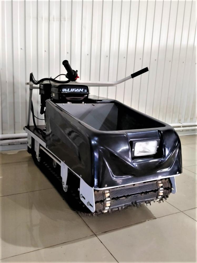 Мотособака оснащена 4-х тактным двигателем Lifan мощностью 15 л. с., что позволяет достигать скорости до 45 км/ч. Это позволяет быстро перевозить общий груз до 300 кг в санях. Объем двигателя составляет 420 кубов.