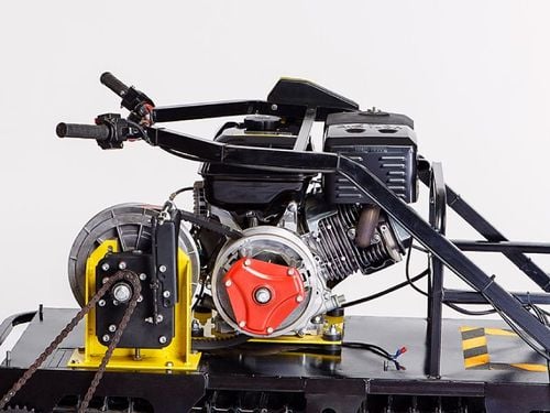 Мотособака оснащена 4 тактным мотором мощностью 17 л.с., что позволяет ей брать скорость до 40 км/ч. Это средняя скорость, которая позволит владельцу быстро перевезти груз до 250 кг. Объем двигателя достигает 445 кубов — это значительно влияет на общую мощность и производительность мотобуксировщика. Кроме того, модель отличается экономным расходом топлива — полный бак вмещает в себя 6,5 л топлива, а при скорости 30-35 км/ч машина потребляет всего 2,5 литра бензина.