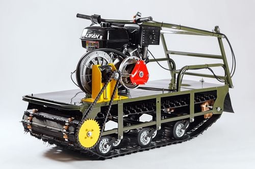 Мотособака весит всего 117 кг, а размер ее составляет 144 см в длину, 52 см в ширину и 80 см в длину. Благодаря своей легкости и компактности, мотобуксировщик способен маневрировать и проходить по рыхлой почве. К тому же мотобукс оснащен катковой подвеской, которая сглаживает ход, обеспечивает устойчивость на неровной поверхности, смягчает удары и вибрации от дороги.