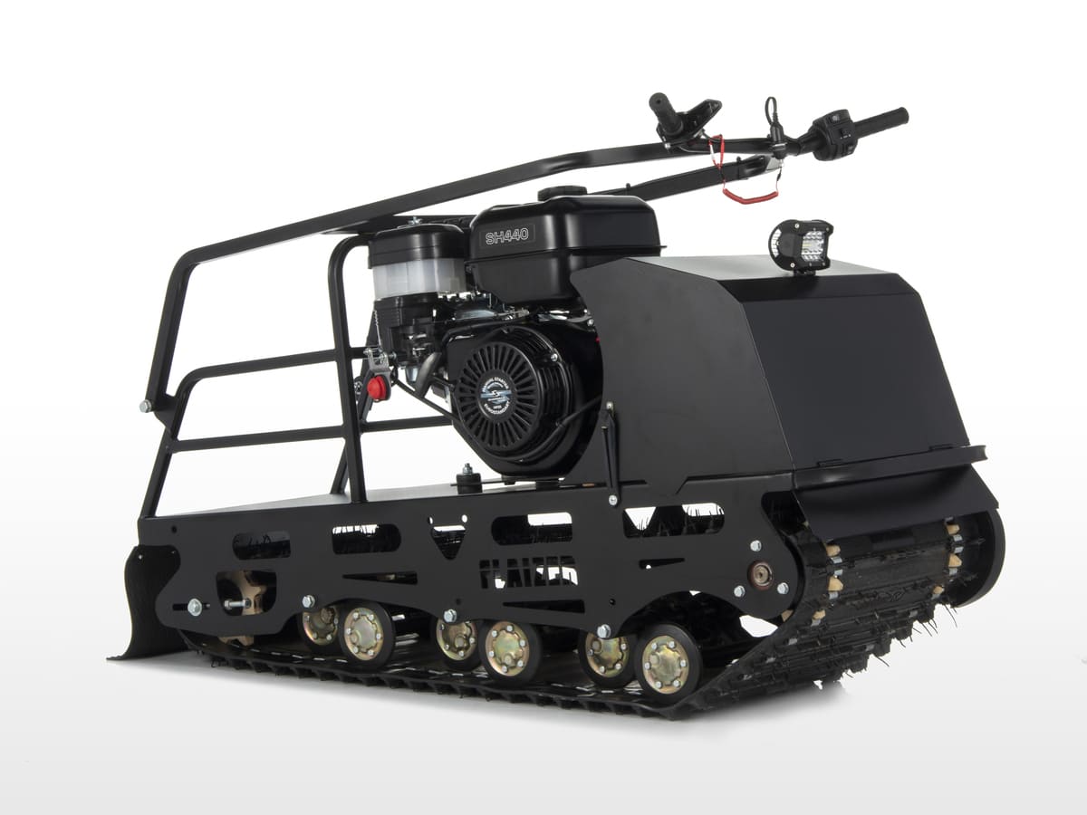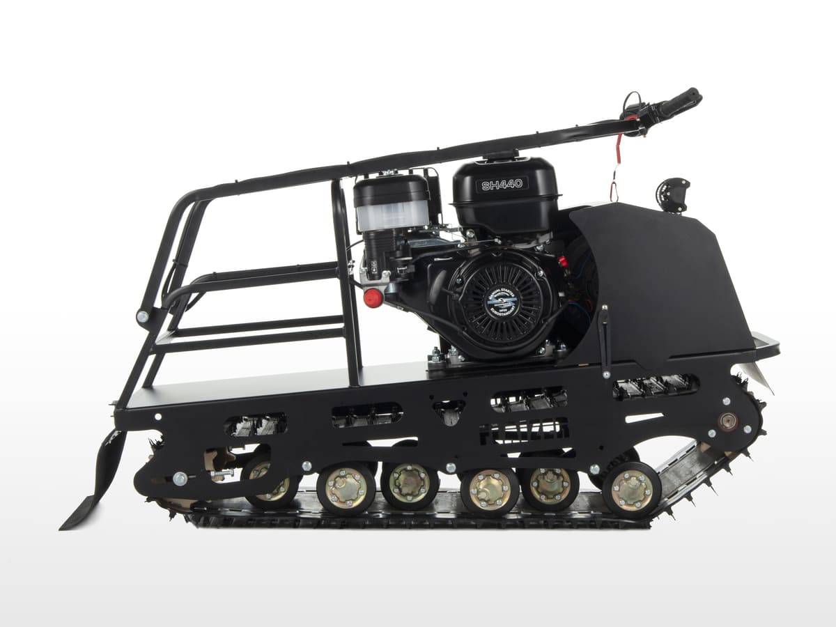Универсальная катковая подвеска, с регулировкой угла атаки и возможностью установки склиз, позволяет эксплуатировать мотобуксировщик по любым поверхностям: снег, лед, болото, трава и т.д.