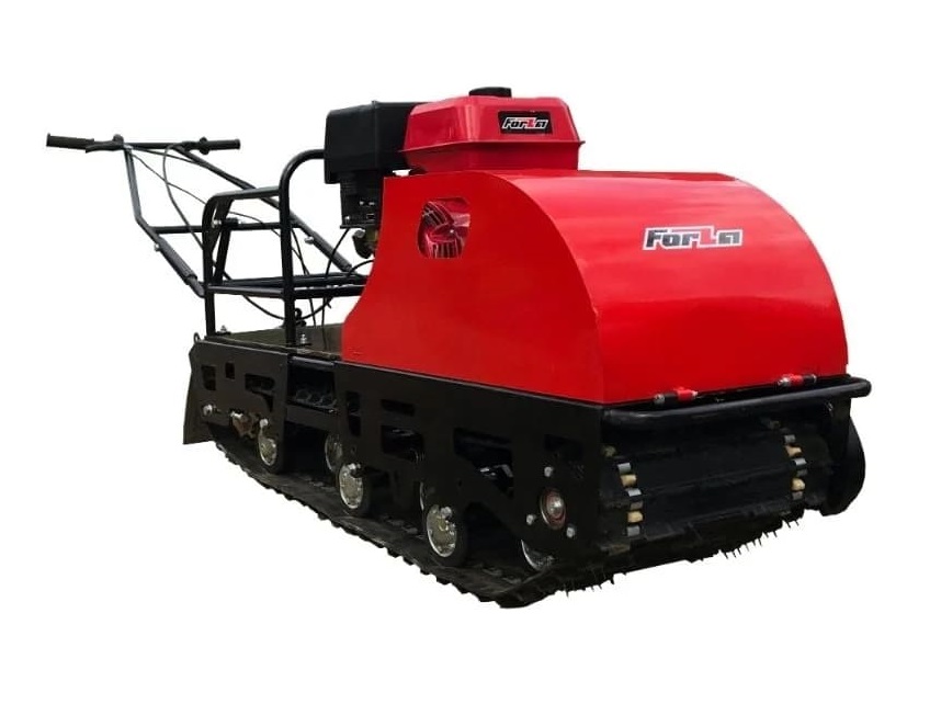 Мотобуксировщик Форза отличается не только мобильностью, но и простотой своей конструкции. Мотособака включает в себя двигатель мощностью 13 лошадиных сил, прочную раму, удобное рулевое управление. В конструкцию входят двухступенчатая вариаторная трансмиссия Сафари с цепной передачей, а также приводом на переднюю ось с правой стороны по ходу движения, тормозная система, ручной стартер и электростартер, катковая подвеска.