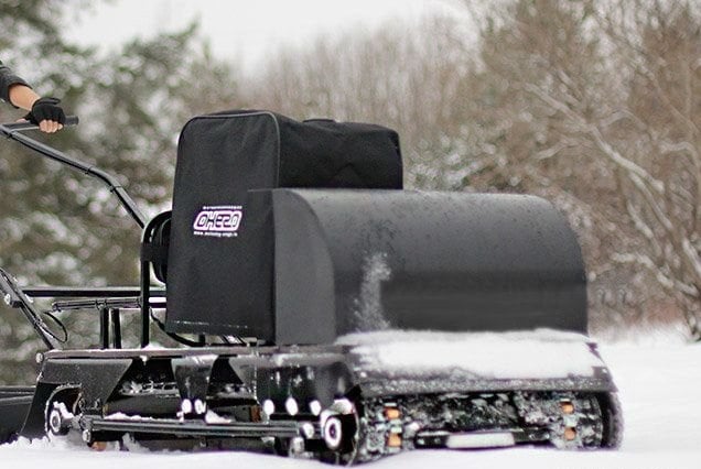 Буксировщик оснащен 4-х тактным двигателем мощностью 13 л. с., достигающий скорость до 40 км/ч. Это позволяет быстро перевозить груз до 300 кг в санях и на специальной багажной площадке мотобуксировщика. Объем двигателя составляет 389 кубов.