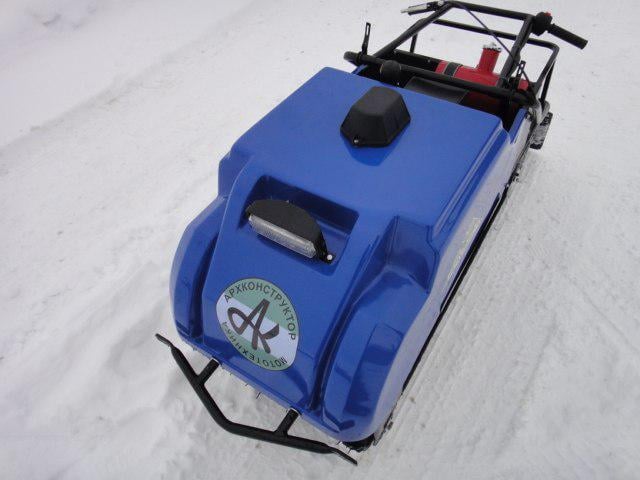 В транспортном положении (со сложенным рулем) мотобуксировщик очень компактен и помещается в багажник автомобиля. Для перевозки в машине буксировщик можно поместить в стандартные сани-волокуши. При этом растаявший снег останется в волокуше.Масса транспортируемого груза составляет до 450 кг., из расчета 150-200 кг в одни сани-волокуши.