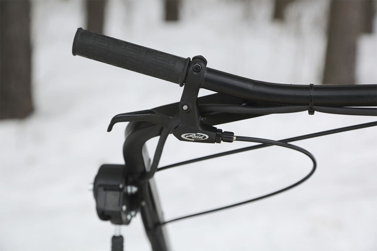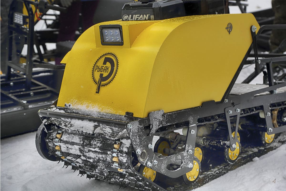В конструкции мотовездехода используется цельная резиновая гусеница Composit шириной 500 мм. Гусеница в сочетании с катковой подвеской способна проходить спокойно по льду и даже по территории без снега.