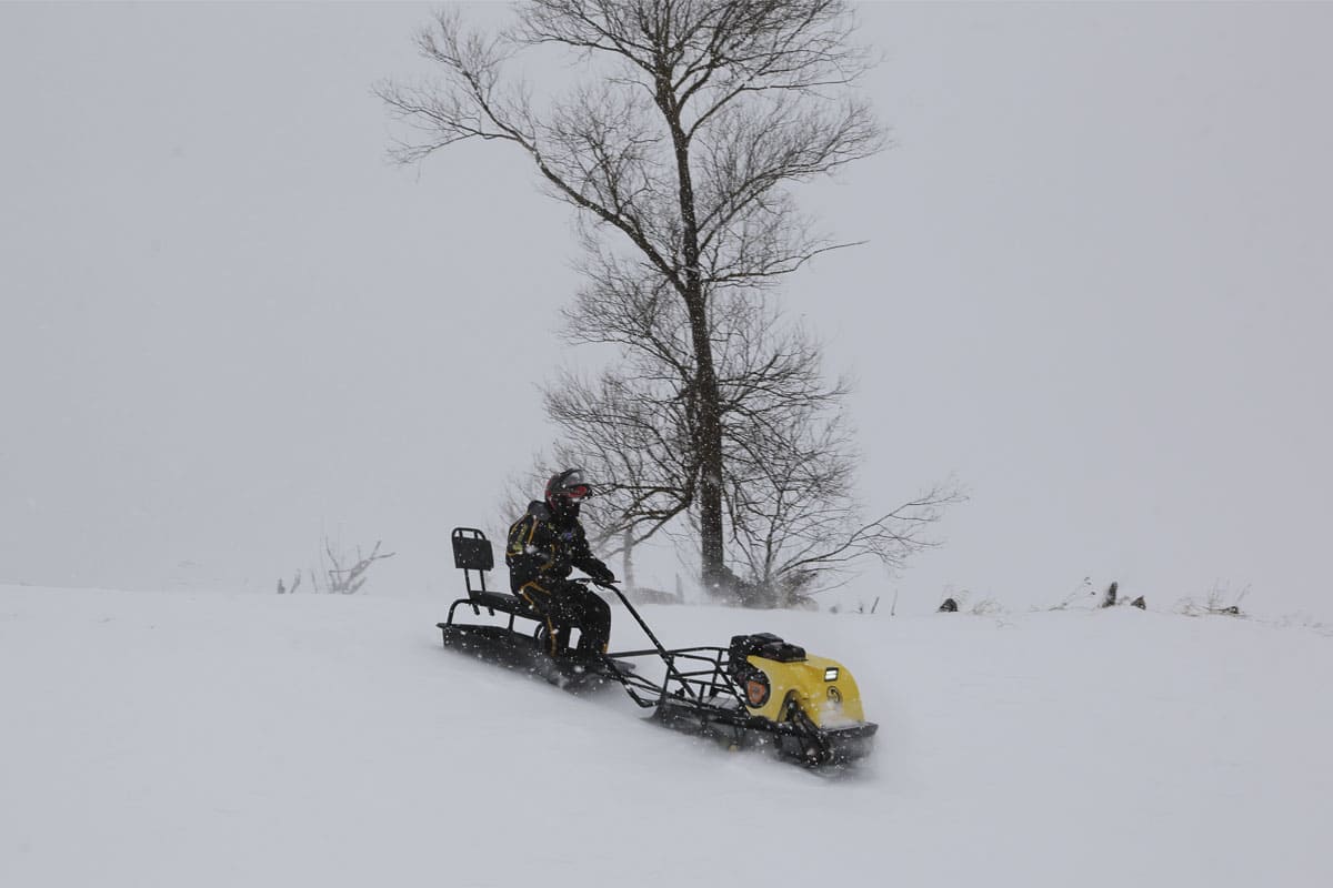 Буксировщик оснащен 4-х тактным двигателем мощностью 13 л. с., достигающий скорость до 40 км/ч. Это позволяет быстро перевозить груз до 300 кг в санях и на специальной багажной площадке мотобуксировщика. Объем двигателя составляет 389 кубов.