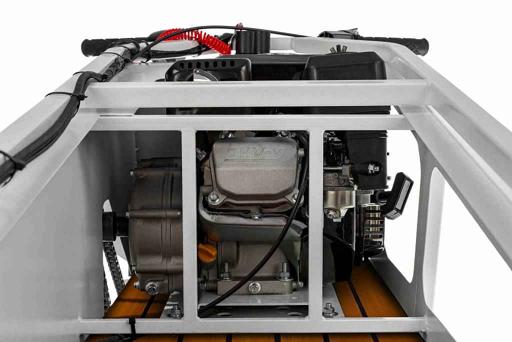 Металл, используемый в изготовлении кузова мотобуксировщика имеет толщину в 5 мм, что делает изделие невероятно прочным и устойчивым к деформации.