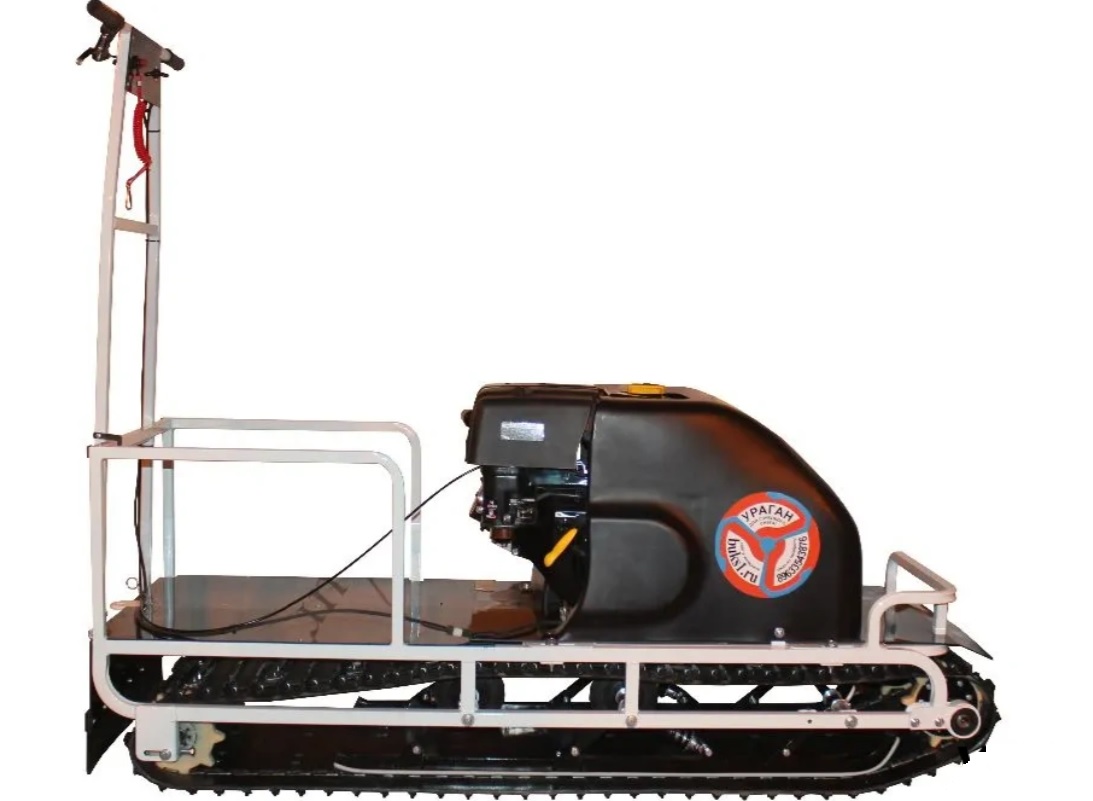Буксировщик оснащен 4-х тактным двигателем мощностью 20.4 л.с. и объемом 460 кубов, достигающий скорость до 25 км/ч.Также есть возможность установить сани к мотобуксу, что позволит перевозить дополнительно до 450 кг.