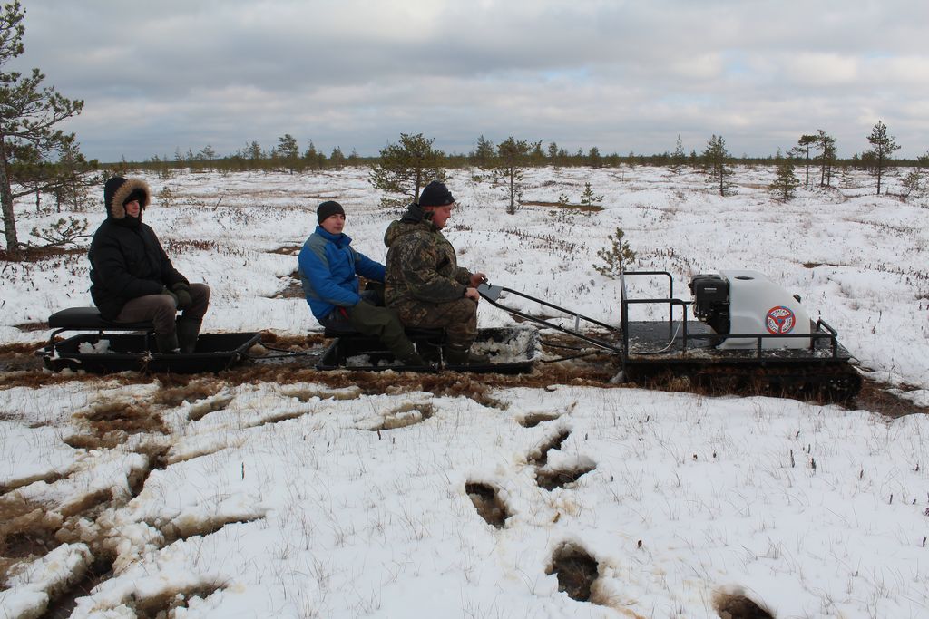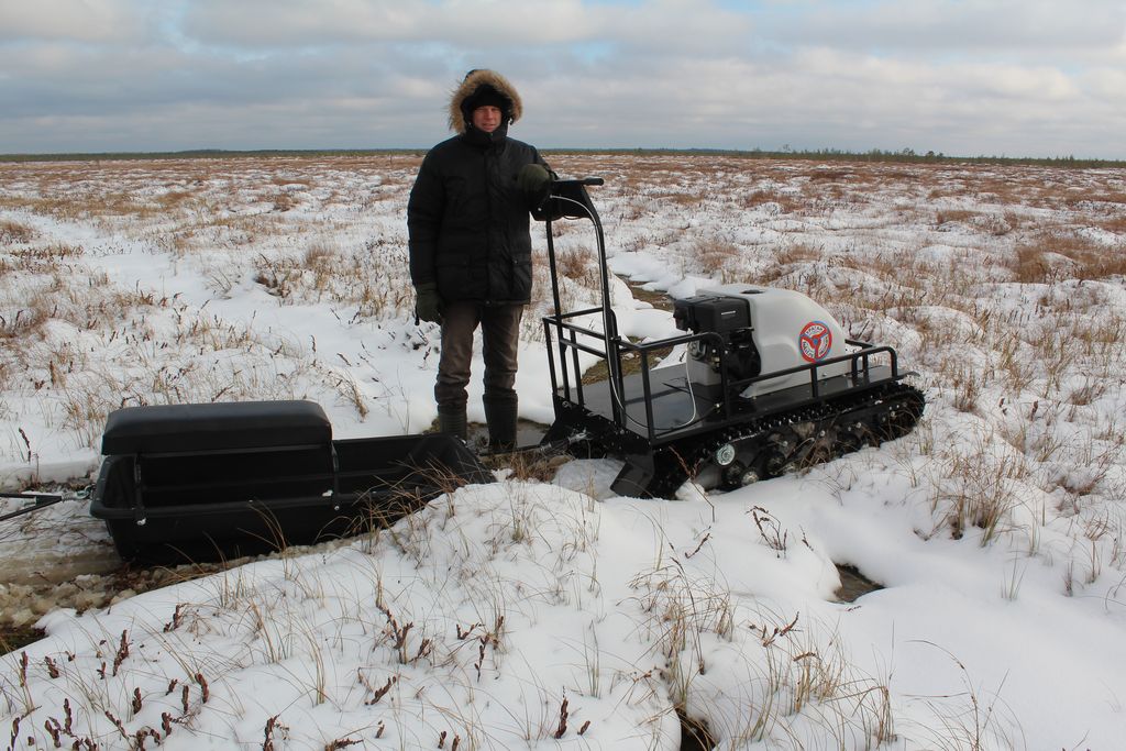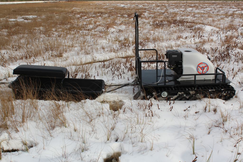 У буксировщика имеется компактная задняя площадка для перевозки личных вещей, инструментов, рыбацких снастей и прочих необходимых мелочей охотнику или рыбаку. Техника оснащена яркой фарой, которая позволяет пользоваться транспортом даже в темное время суток. Морозо- и вибростойкий капот с чехлом карбюратора и пластинами утепления — максимально защищает ДВС от обледенения и от возможности лопнуть.