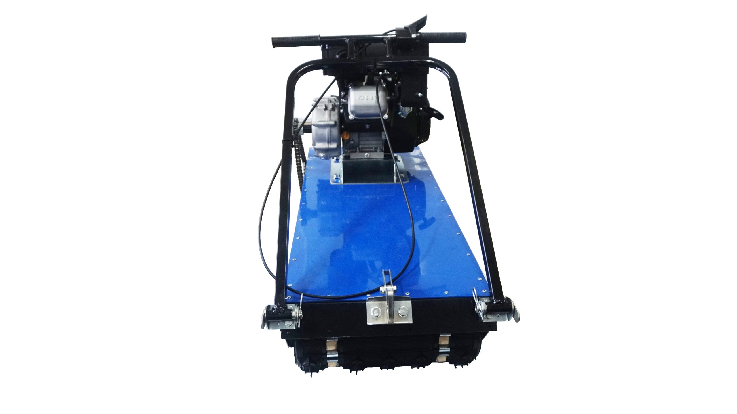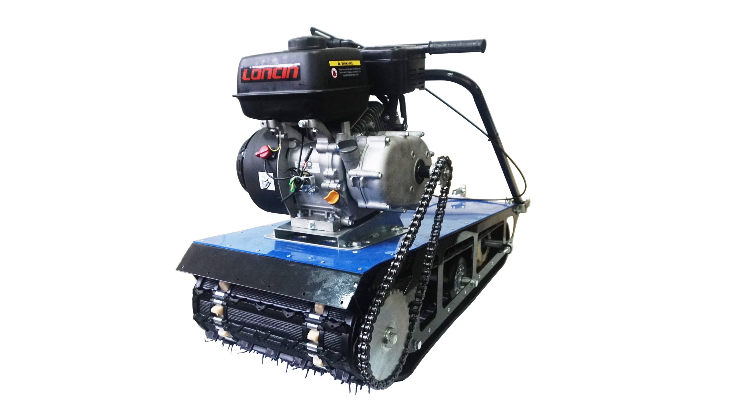 Этот мотобукс оснащен 4-х тактным двигателем мощностью 8,5 л. с., что позволяет достигать скорости до 18 км/ч. Это позволяет быстро перевозить груз весом до 400 кг. Объем двигателя составляет 223 кубов. Кроме того, мотовездеход оснащен топливным баком на 6 литров. Расходуя до 3 литров бензина в час, мотобуксировщик дает возможность до 2-х часов беспрерывной работы.