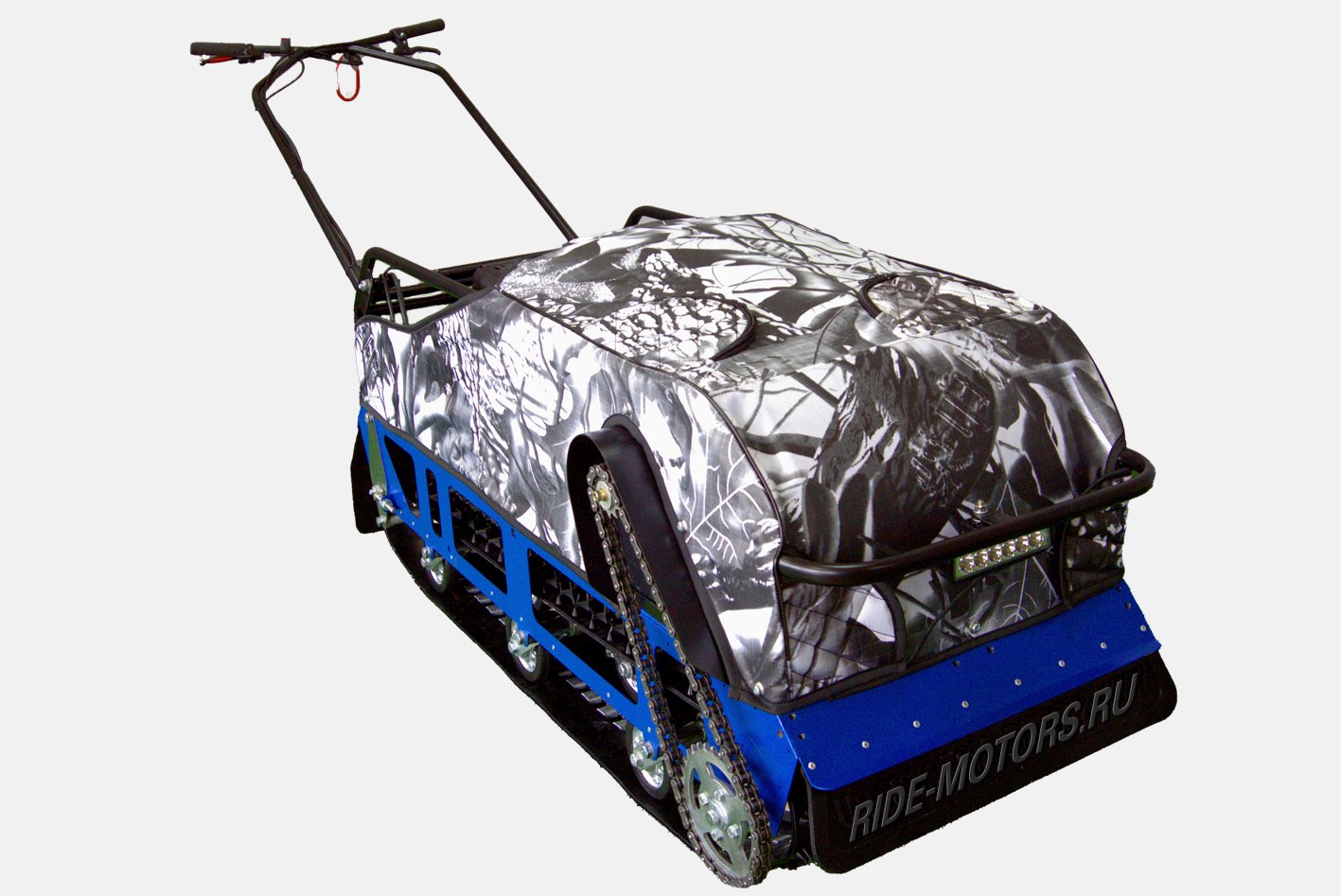 На мотобуксах Экстрим-моторс установлена пространственная рама, выполненная из надежного сплава углеродистой стали, что играет важную роль в условиях сложного бездорожья.