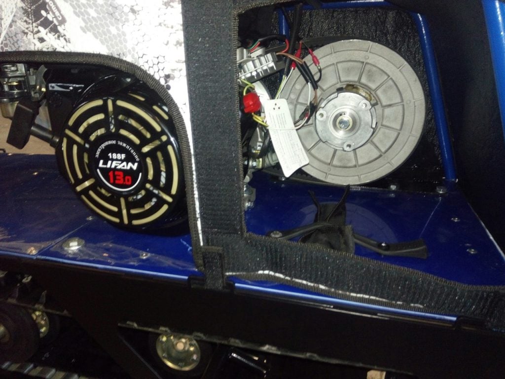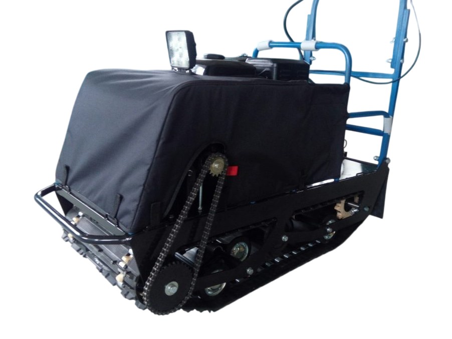 В конструкции мотовездехода используется цельная резиновая гусеница шириной 380 мм. Площадь опоры гусеницы улучшает тяговые характеристики, проходимость и устойчивость буксировщика.