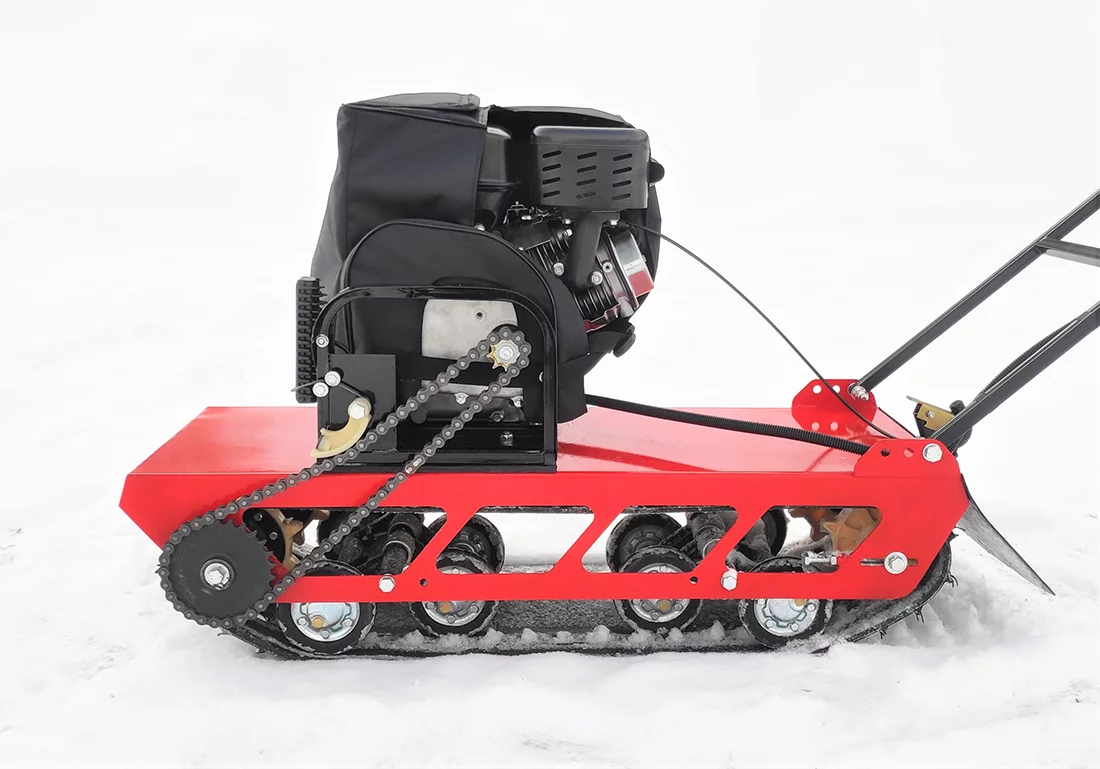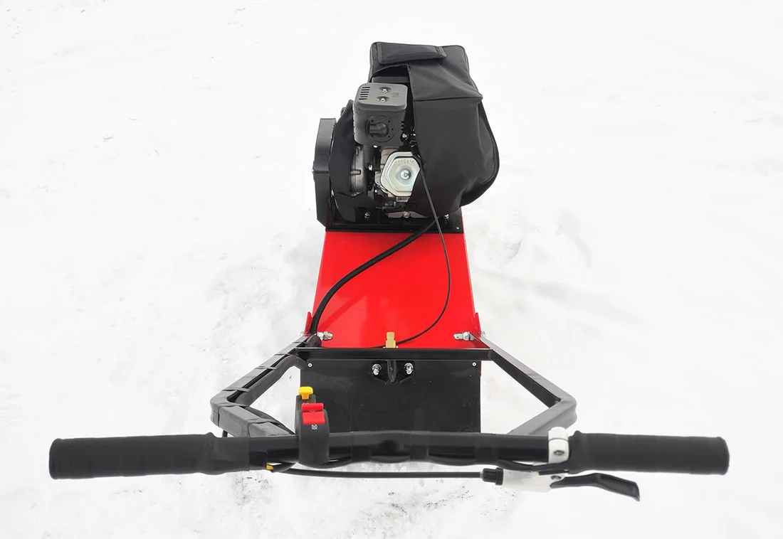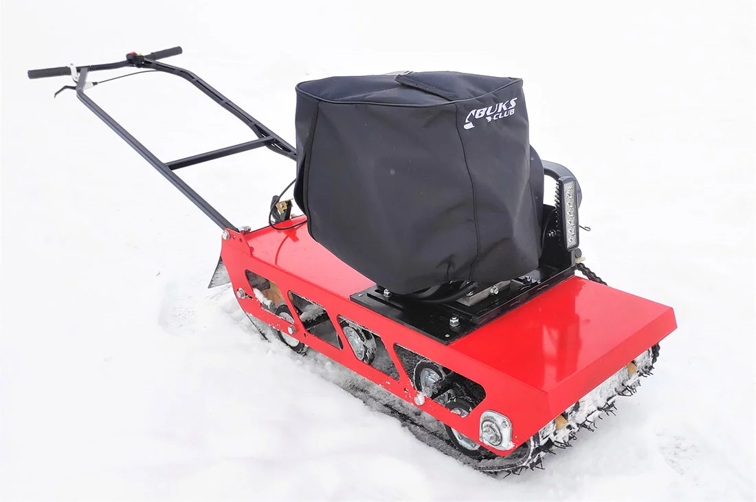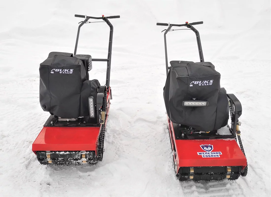 Мотособака весит 60 кг, а размер ее составляет 104 см в длину, 39 см в ширину и 65 см в высоту. Модель оснащена гусеницей шириной 380 мм. Гусеница в сочетании с катковой подвеской способна проходить спокойно по льду и даже по территории без снега.