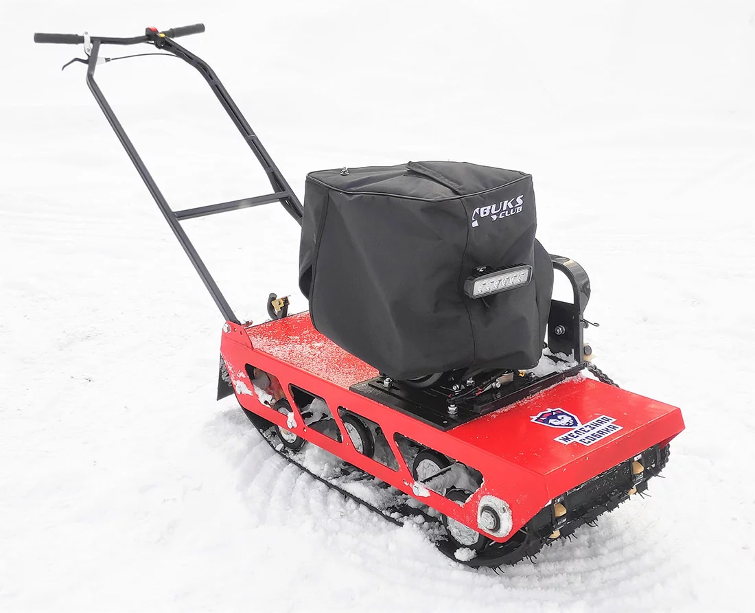 Мотособака весит 60 кг, а размер ее составляет 104 см в длину, 39 см в ширину и 65 см в высоту. Модель оснащена гусеницей шириной 380 мм. Гусеница в сочетании с катковой подвеской способна проходить спокойно по льду и даже по территории без снега.