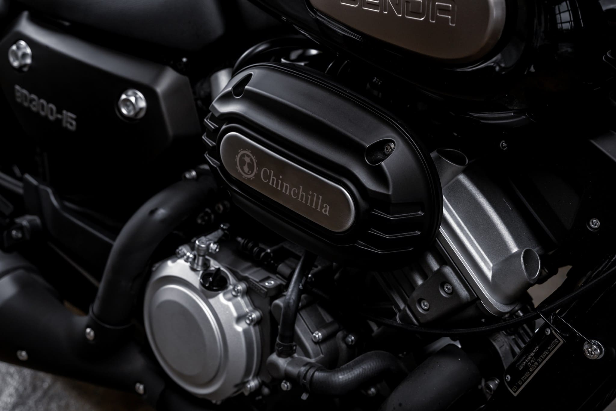 Уникальной особенностью мотоцикла BENDA Chinchilla 300 является силовой агрегат. Этот малокубатурный круизер оснащён двухцилиндровым V-образным двигателем с системой впрыска топлива. При этом здесь нет никаких имитаций рёбер «воздушника» – это честный современный мотор жидкостного охлаждения, а радиатор установлен между труб рамы и прикрыт декоративной решёткой.